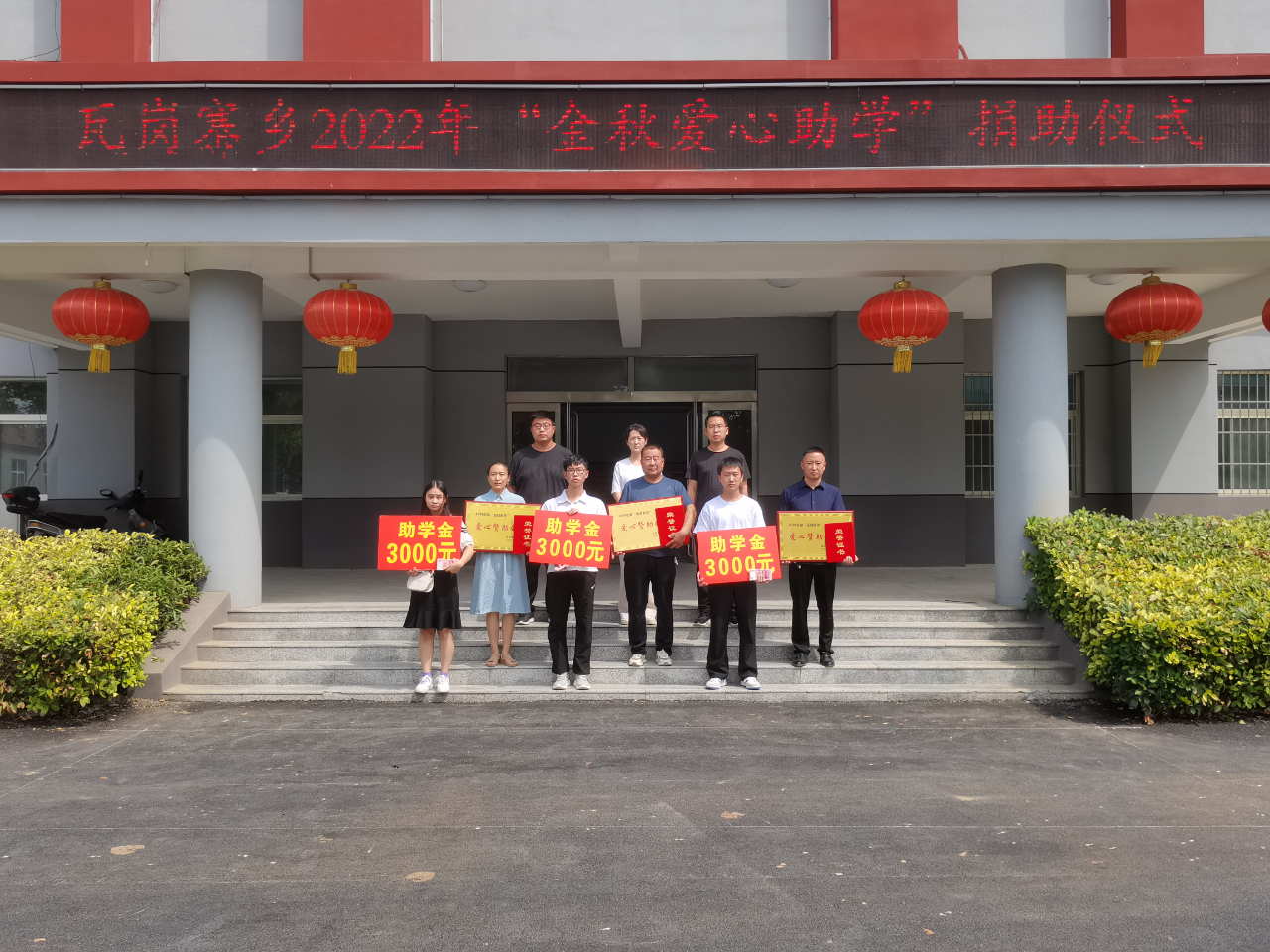 仪式上,瓦岗寨乡景区、河南时风铝业限公司和河南佳阳服装服饰有限公司为结对帮扶的困难学生每人发放助学金3000元。