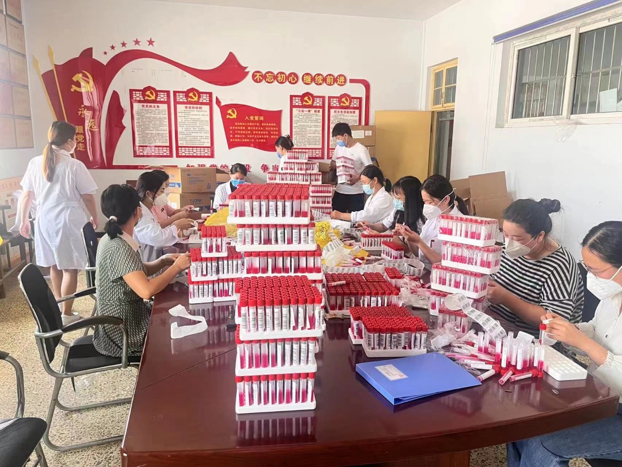 因疫情防控的需要,要做好全民采集核酸的准备,他们提前对院内防疫物资进行统计,做好物资储备;对采样人员进行统一培训,从做好自身防护、采样操作、问题反馈等方面进行了细致的安排;对医护人员进行了防护专题培训;对卫生院全体医护人员进行了全员核酸采集演练,确保每一个人都能熟练掌握和使用核酸采集登记APP。核酸运送人员更是不辞辛苦,不论是子夜还是凌晨始终24小时待命,从无怨言。