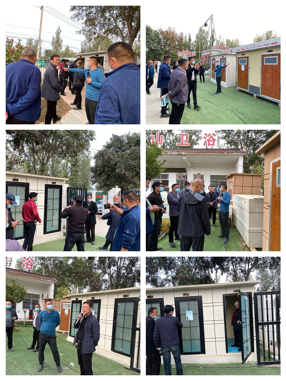 在河南千山卫浴有限公司、河南康威管业有限公司参观时,观摩组一行详细了解了装配式整体卫生间的特点、改厕费用及施工时间等情况。在王庄镇小屯村,观摩组实地观看了正在施工的装配式整体卫生间和已经投入使用的装配式整体卫生间。观摩现场,大家边走边看、边看边学、边学边议,学习交流氛围十分浓烈。