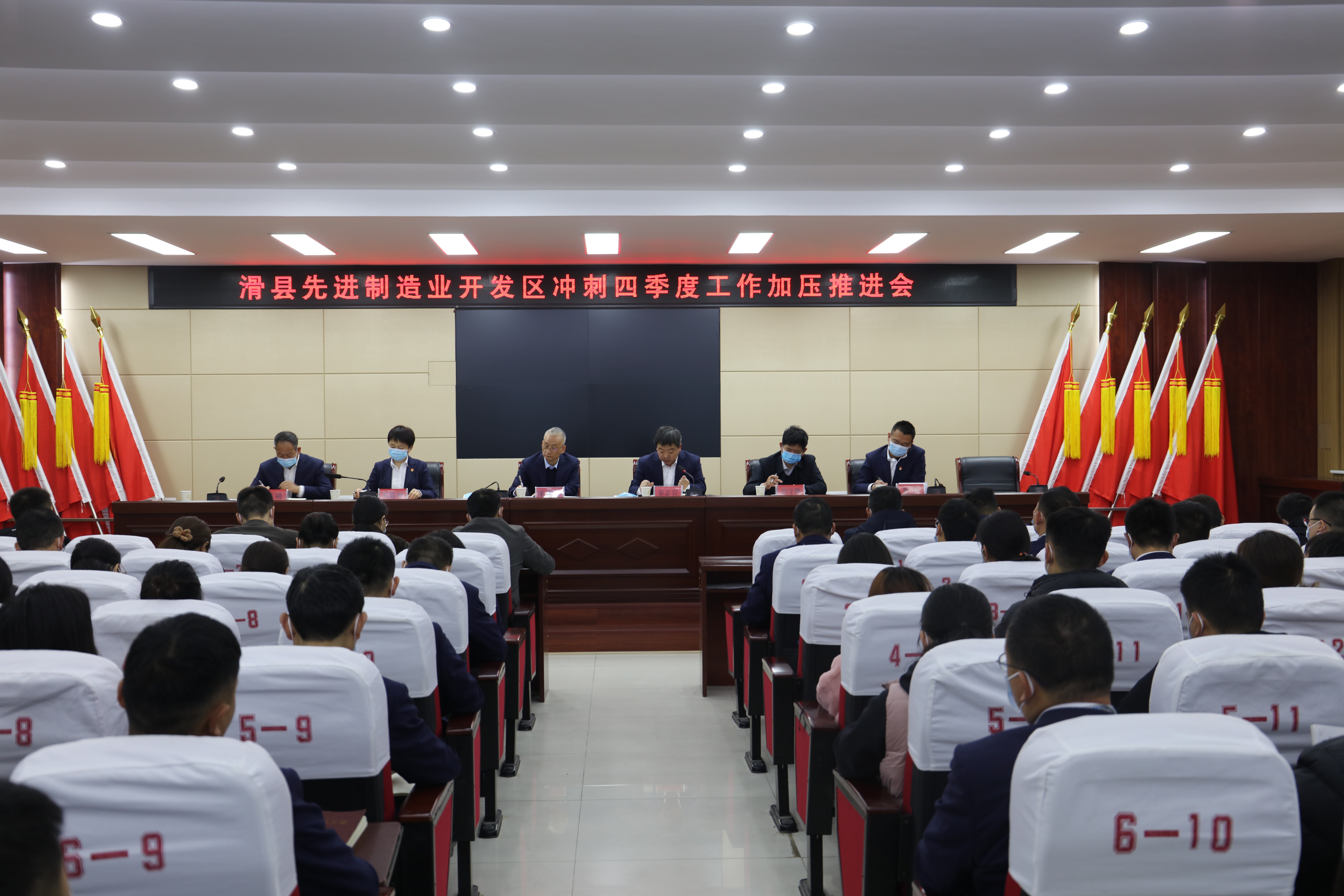 11月5日,滑县先进制造业开发区召开冲刺四季度工作加压推进会,全面总结前三季度经济运行情况,部署四季度工作,动员全体机关干部拼搏奋进、全力冲刺,确保圆满完成年度各项任务。滑县先进制造业开发区管委会主任侯德安、县人民政府党组成员、副县长秦志岩出席会议并讲话,滑县先进制造业开发区管委会副主任孔聪利主持会议。