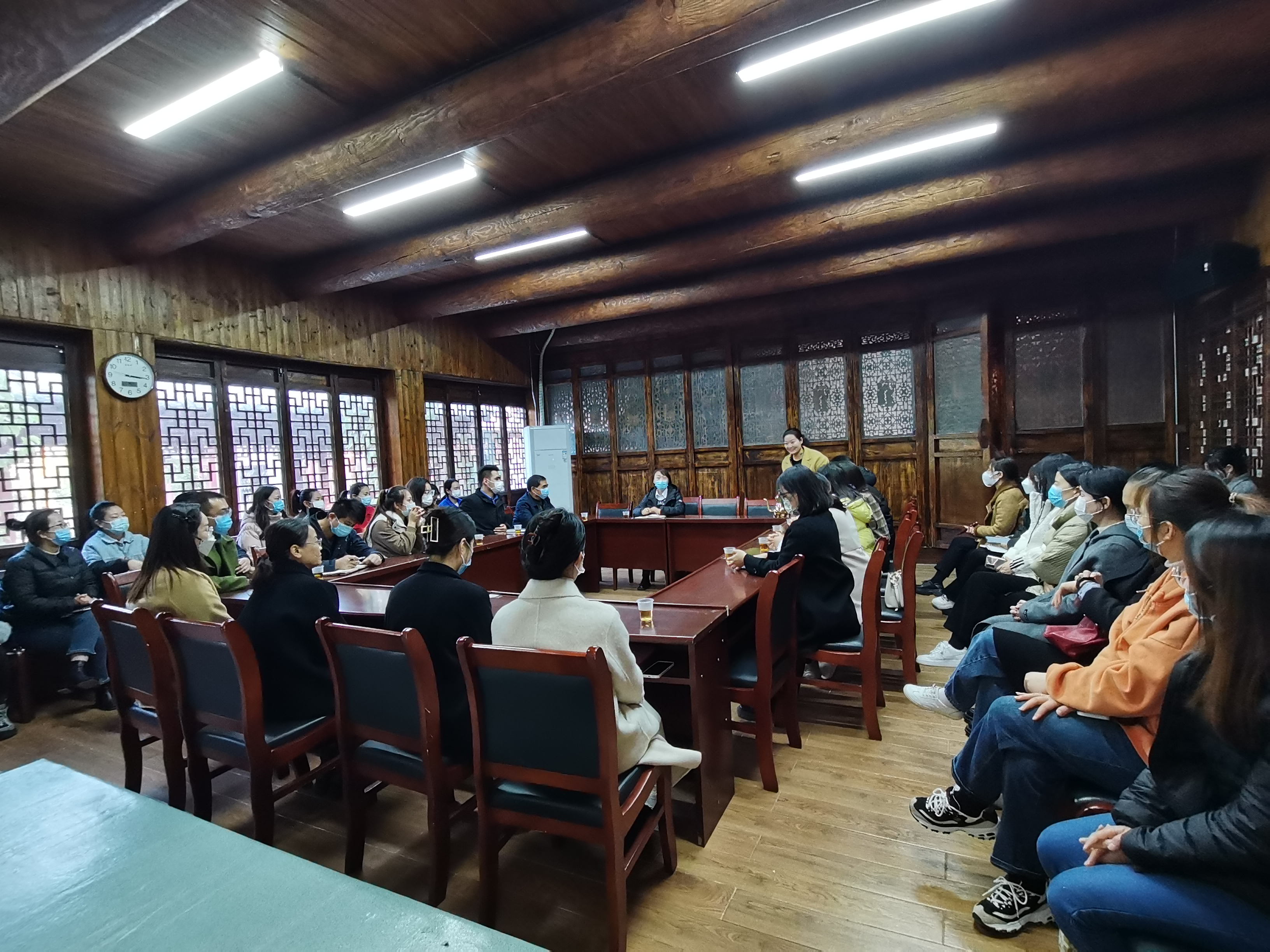 本次培训邀请了道口大曲讲解员王闪为大家进行授课。通过实地参观、讲解示范、座谈交流等互动式培训方式,集知识性、技能性、趣味性于一体,从讲解员的形象礼仪、语言基础、讲解技巧、突发应对等方面进行培训。在座谈交流过程中,王闪从仪态、语调、内容等方面,以专业的视角和丰富的经验,指出讲解中的不足之处及改进方法,为企业讲解员“指点迷津”。