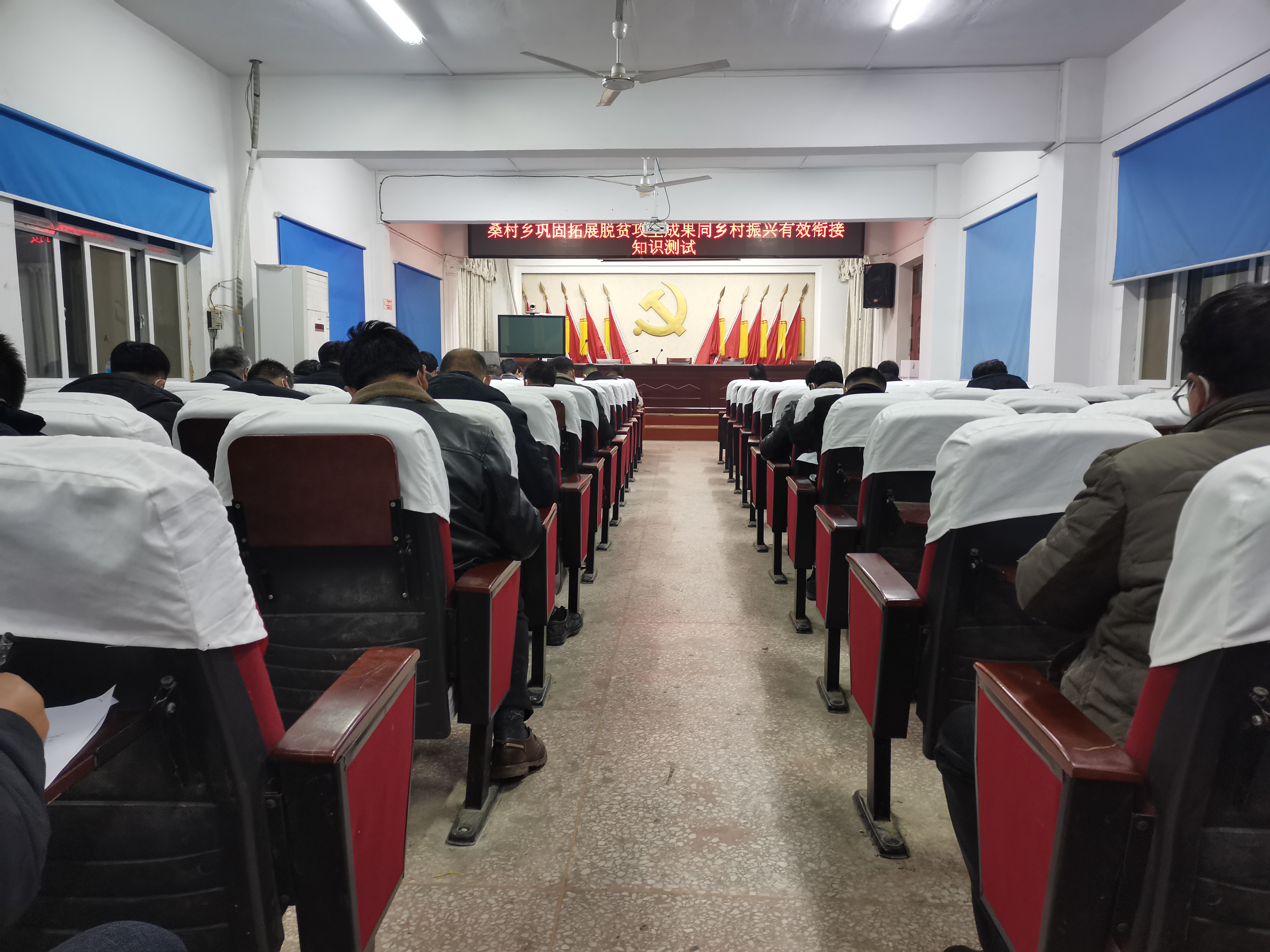 此次集中统一测试在乡机关五楼会议室,采用闭卷方式进行,测试内容为巩固拓展脱贫攻坚成果同乡村振兴有效衔接政策、业务知识。