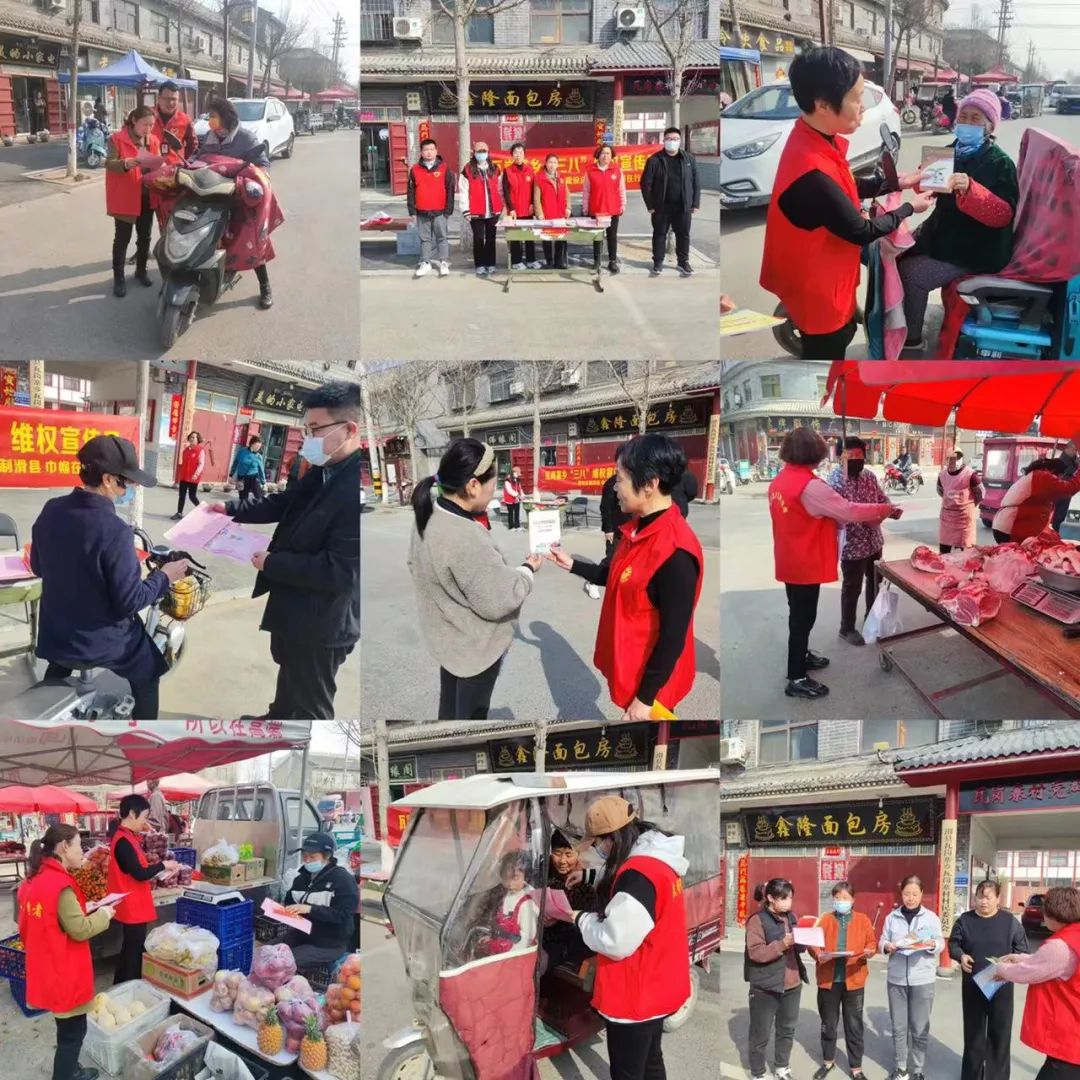 2023年3月8日是第113个“三八”国际妇女节。为进一步提高辖区内妇女法律意识和维权能力,瓦岗寨乡妇联、工会、司法所工作人员和新时代文明实践所志愿者在瓦岗寨乡集镇开展“三八”妇女节维权宣传周活动。