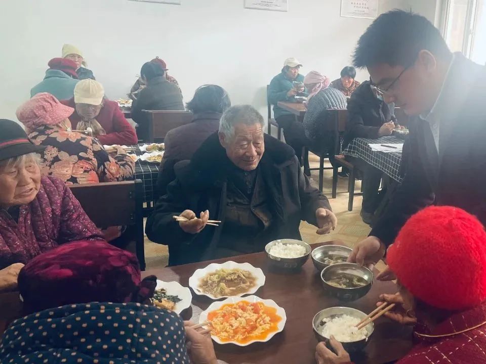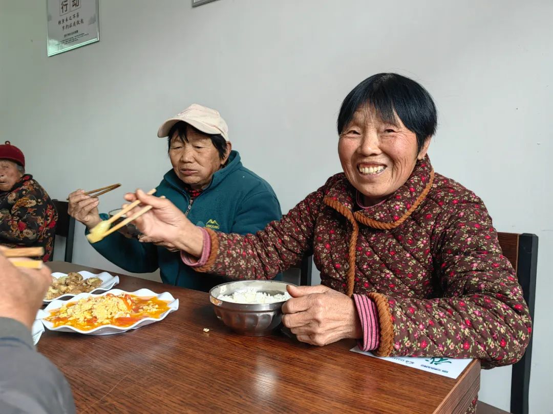 就餐时间到!老人们围坐一桌,吃着热乎乎的饭菜,欢声笑语不断,幸福的笑容洋溢在每个人的脸上。