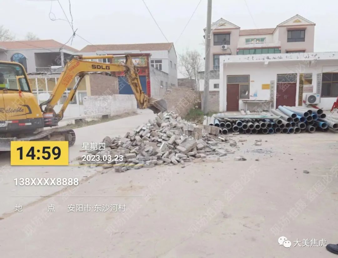 走进焦虎镇东沙河村党群服务中心,一台挖掘机正在紧锣密鼓、有条不紊地进行作业,随着轰隆隆的机器声,高高的围墙被推倒。