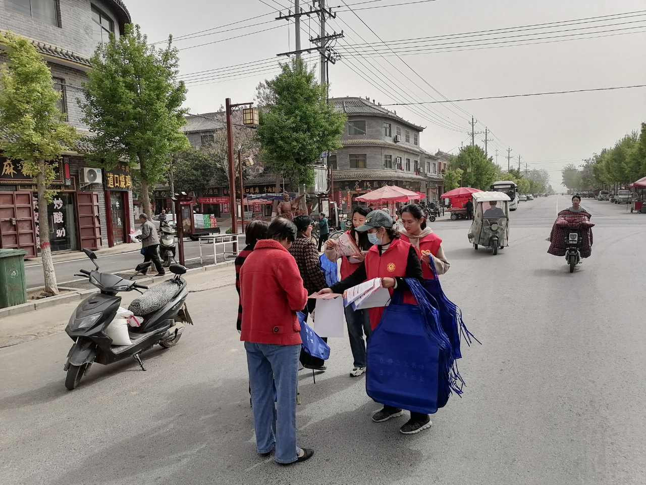瓦岗寨乡综治办工作人员在集镇区设置咨询台为群众答疑解惑,并向过往群众发放印有国家知识以及《刑法》《反恐怖主义法》《反间谍法》等维护国家安全相关的法律法规宣传单。