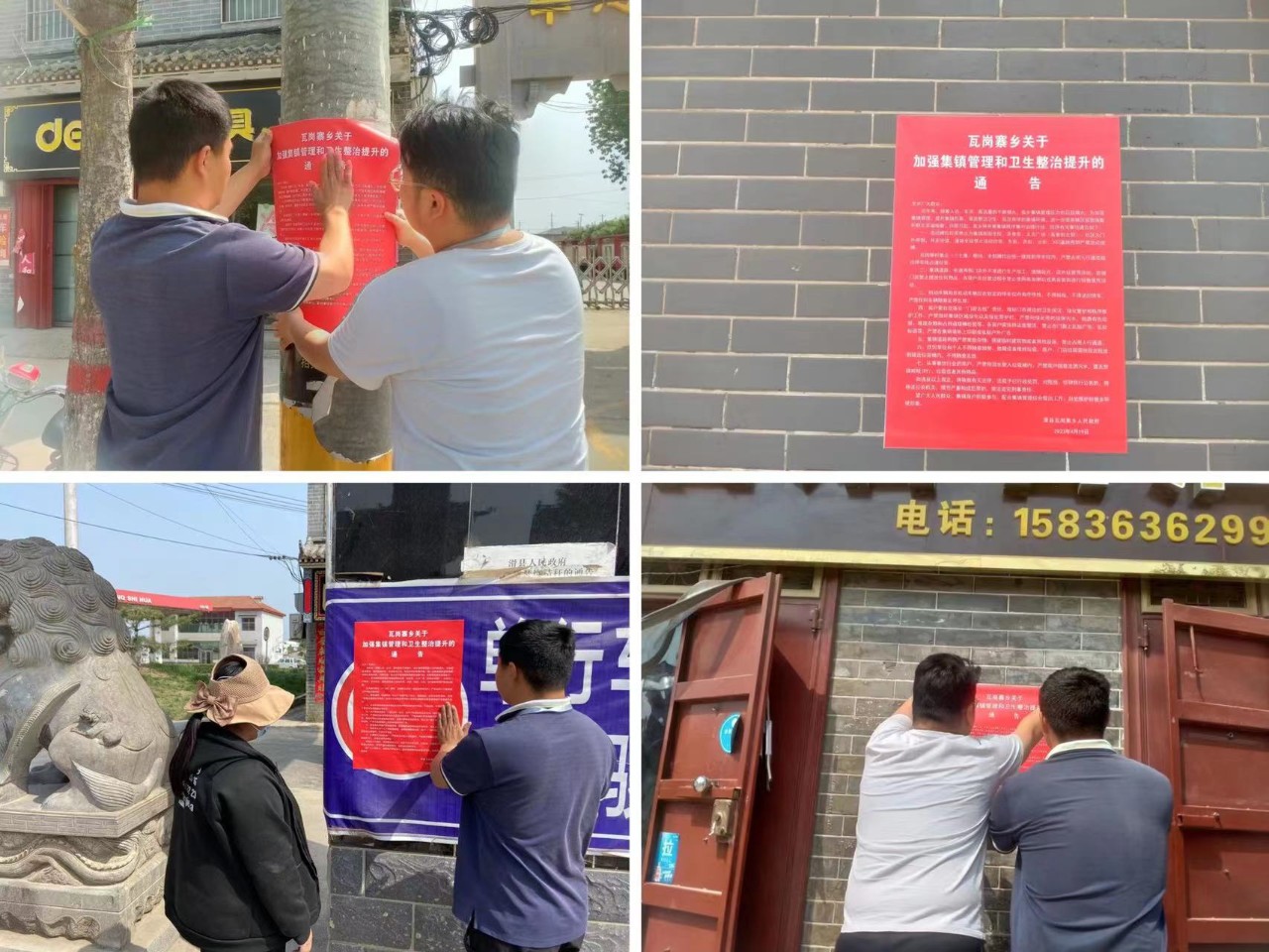 张贴一张公告,促集镇管理规范化。制定《瓦岗寨乡关于加强集镇管理和卫生整治提升的通告》,明确流动摊位区域,明确禁止违规占道经营、店外经营。通过在集镇人流聚集点位张贴纸质公告进行广泛宣传,倡导全乡广大人民群众、流动商户积极参与、配合集镇管理综合整治工作,自觉维护好我乡环境形象。