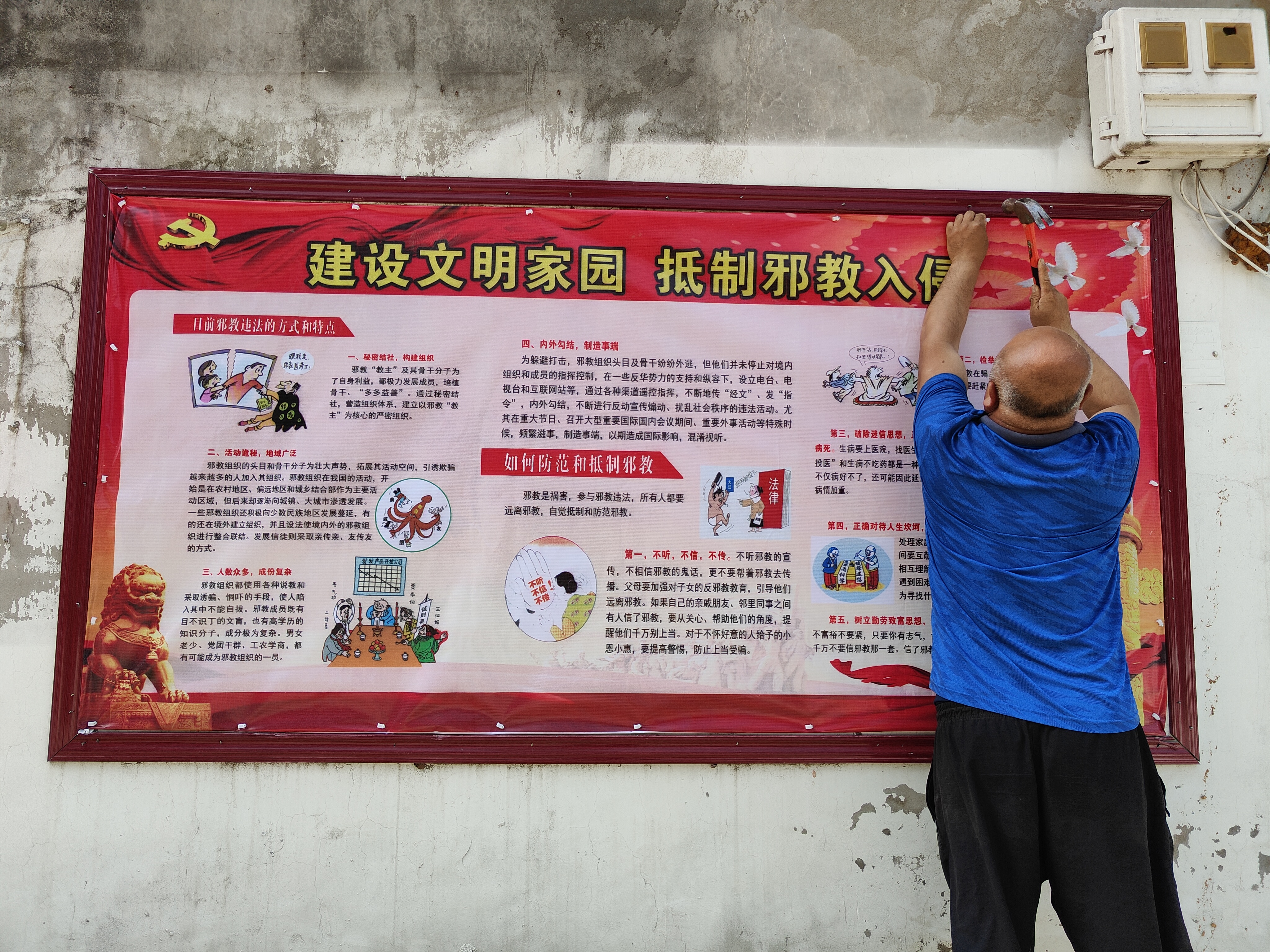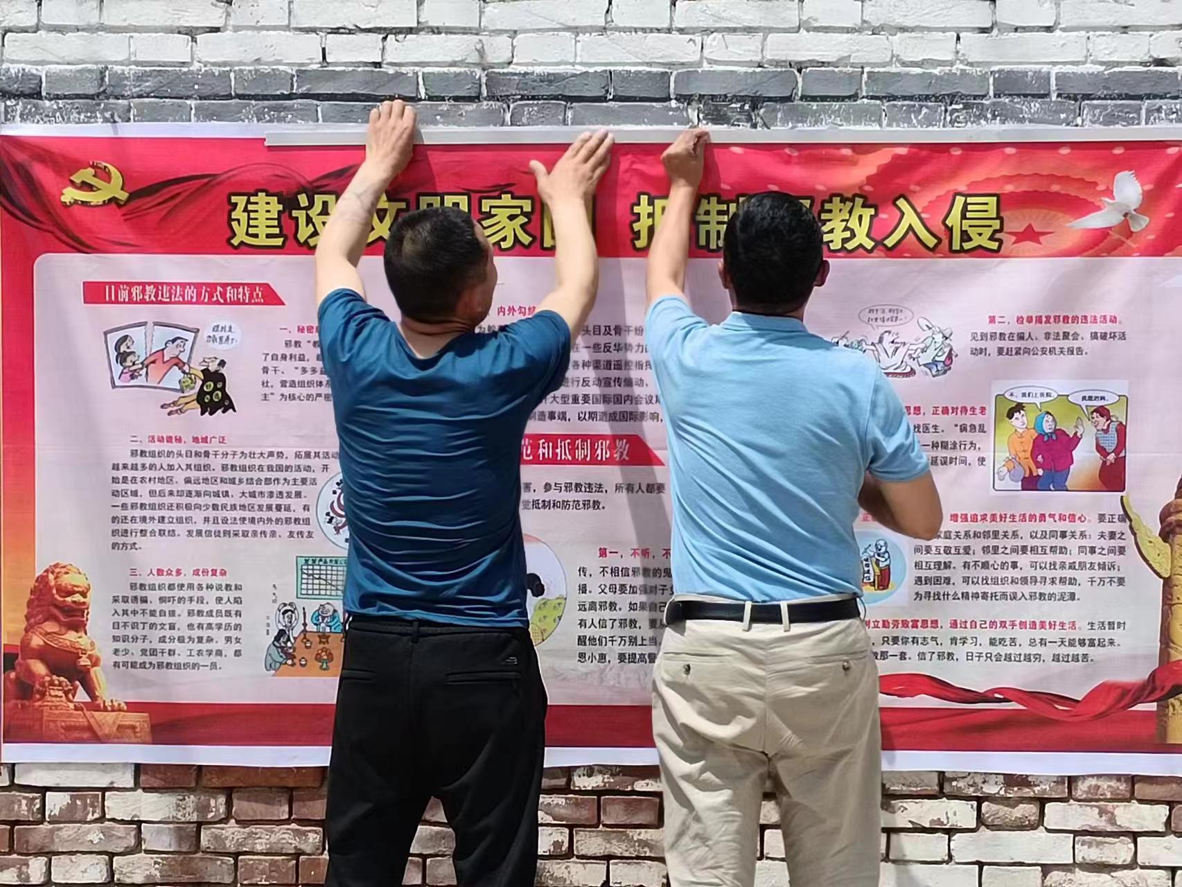为切实增强广大人民群众识别邪教、抵制邪教的能力,焦虎镇积极开展“崇尚科学,反对邪教”警示教育宣传活动,在各村醒目地方安装宣传版面,向群众展示现实案例、讲解邪教的特征及危害,引导群众对邪教言论做到不听、不信、不传,增强法治观念,提高辨别能力。