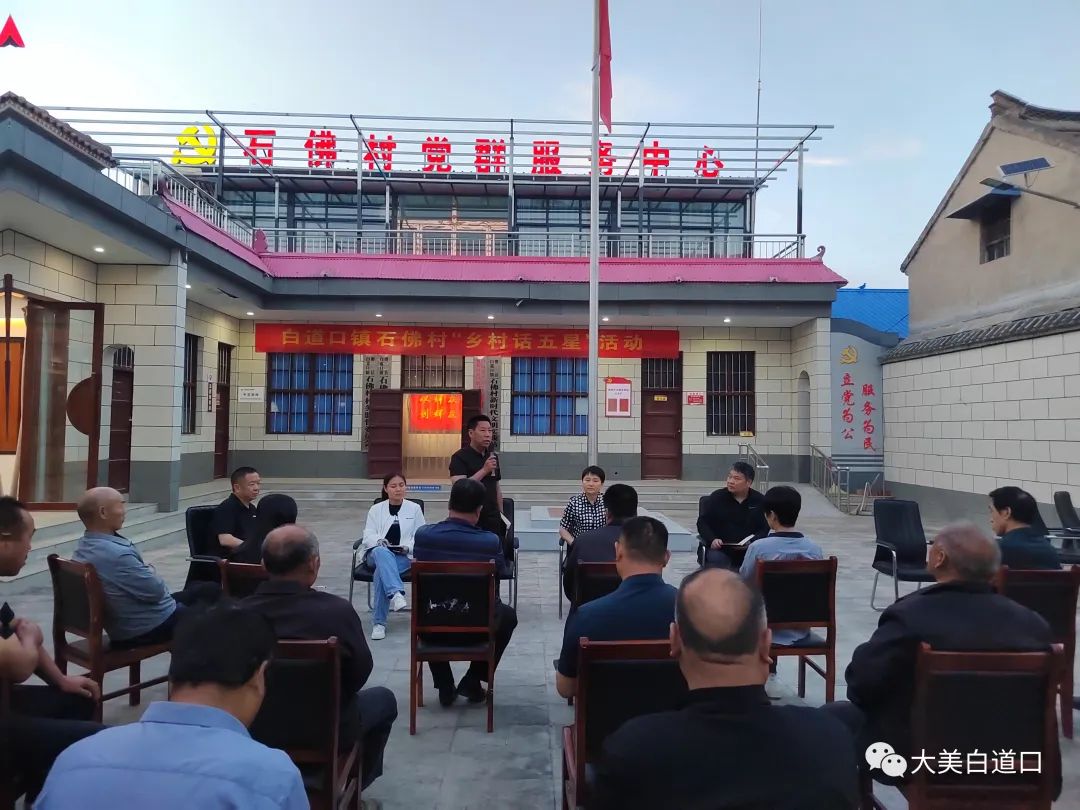 5月22日晚,在白道口镇石佛村正进行一场别开生面的会议讨论。拉近来看,群众干部齐聚一堂,欢声笑语。来是“乡村话五星”活动正在开展。滑县先进制造业开发区党工委委员、管委会副主任孔聪俐,镇党委书记付海涛,部分党政班子成员参加了此次活动,通过与群众面对面交流、零距离接触,聚焦“五星”支部创建谈发展、提建议、话振兴,为村庄发展建言献策。