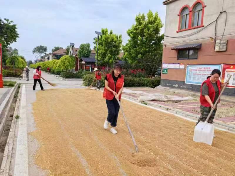 志愿者们身穿红马甲进村入户做好麦田防火宣传工作的同时,帮助村里留守妇女、困难群众晾晒麦子,为“三夏”抢收保驾护航,确保粮食颗粒归仓。