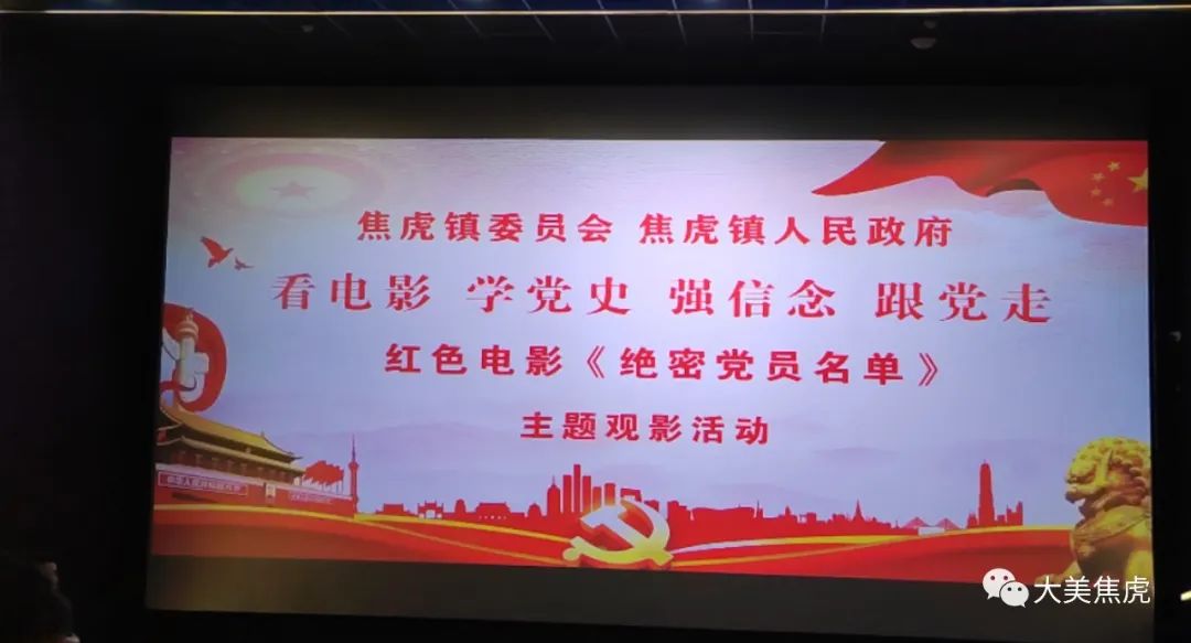 为深入学习贯彻习近平新时代中国特色社会主义思想和党的二十大精神,不断推动党史学习教育常态化长效化,6月30日下午,焦虎镇组织机关党员干部150余人,到奥斯卡巨幕影城集中观看红色电影《绝密党员名单》,激励大家学习革命先烈精神,重温红色历史,凝聚奋进力量。