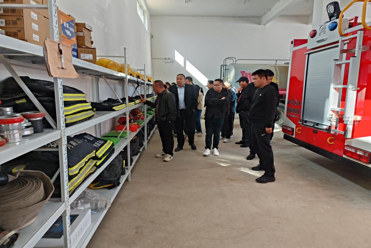 随后,企业代表一行参观了车库、装备库,并不时地向消防救援人员咨询相关问题。在详细介绍消防车辆性能和用途以及配备的各种装备器材名称的同时向大家讲授火灾报警、火场逃生自救和消防设施应用等基本知识。