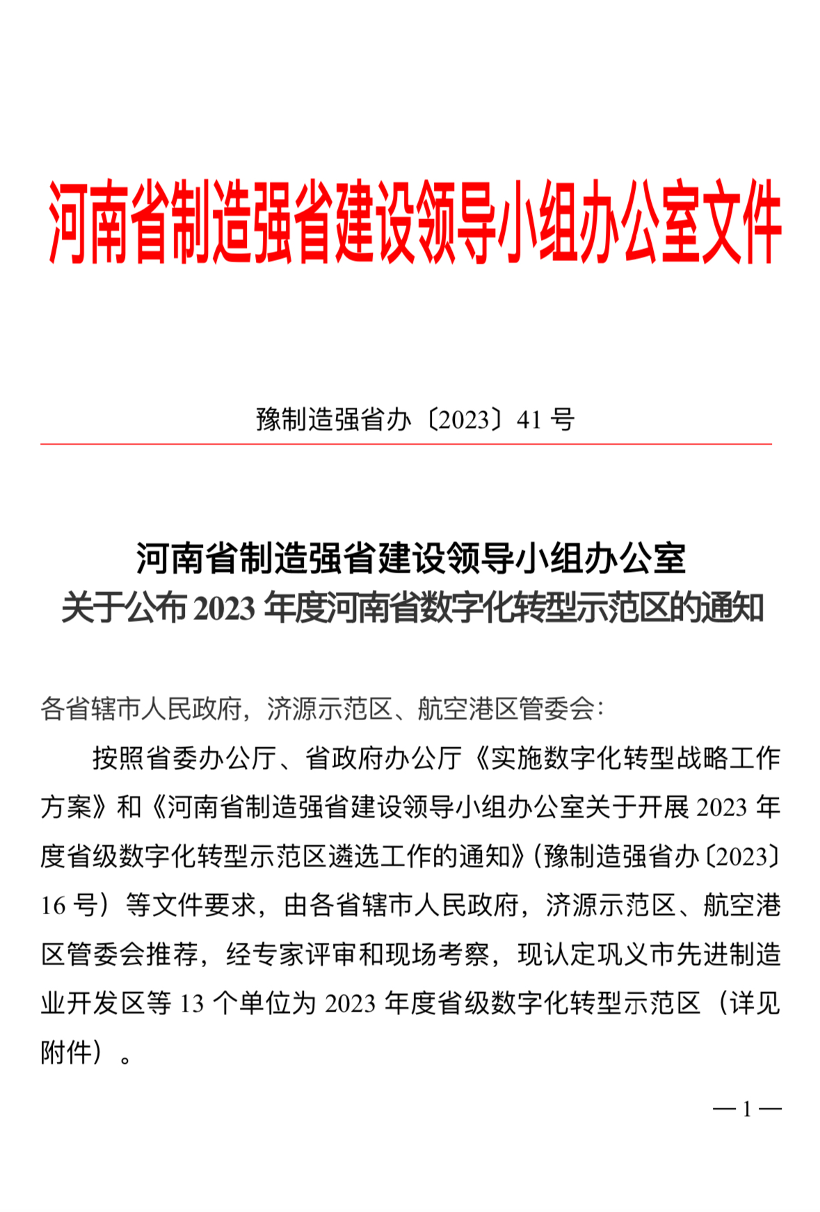 近日,河南省制造强省建设领导小组办公室发布《关于公布2023年度河南省数字化转型示范区的通知》,经专家评审和现场考察,滑县先进制造业开发区被认定为2023年度省级数字化转型示范区,是2023年度安阳市唯一被认定的省级数字化转型示范区。