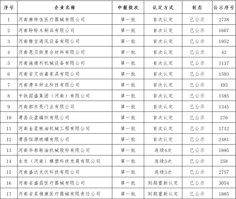 11月22日,全国高新技术企业认定管理工作小组办公室发布公告,对2023年河南省第一批高新技术企业名单进行了备案公示。
