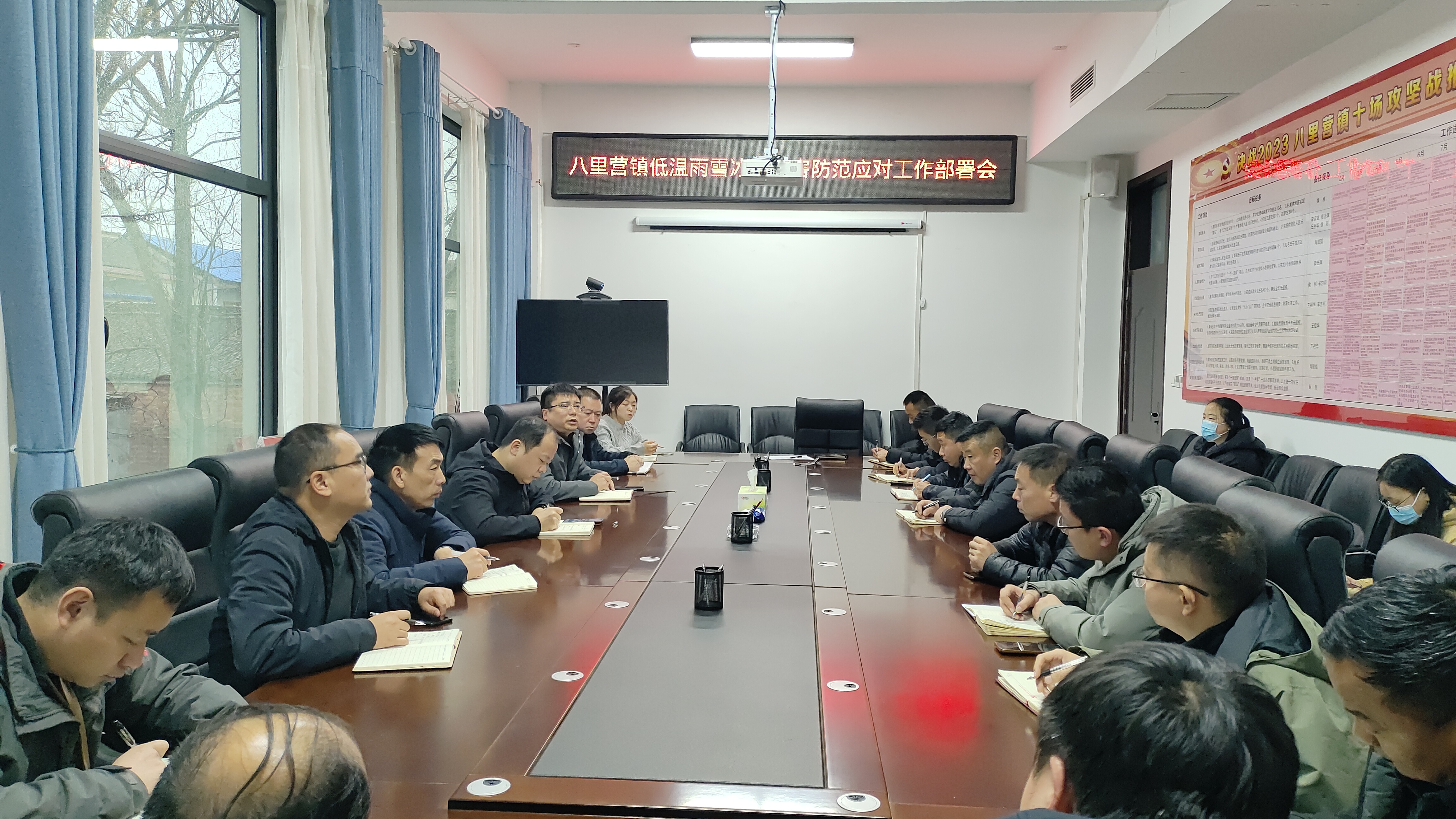 12月10日上午,八里营镇又组织班子成员、区长及应急办、农办、村镇中心、供电所、卫生院、中心校等部门负责人,召开低温雨雪冰冻灾害防范应对工作部署会,对近期低温寒潮天气进行研判,并就各项防范工作进行再安排、再部署。