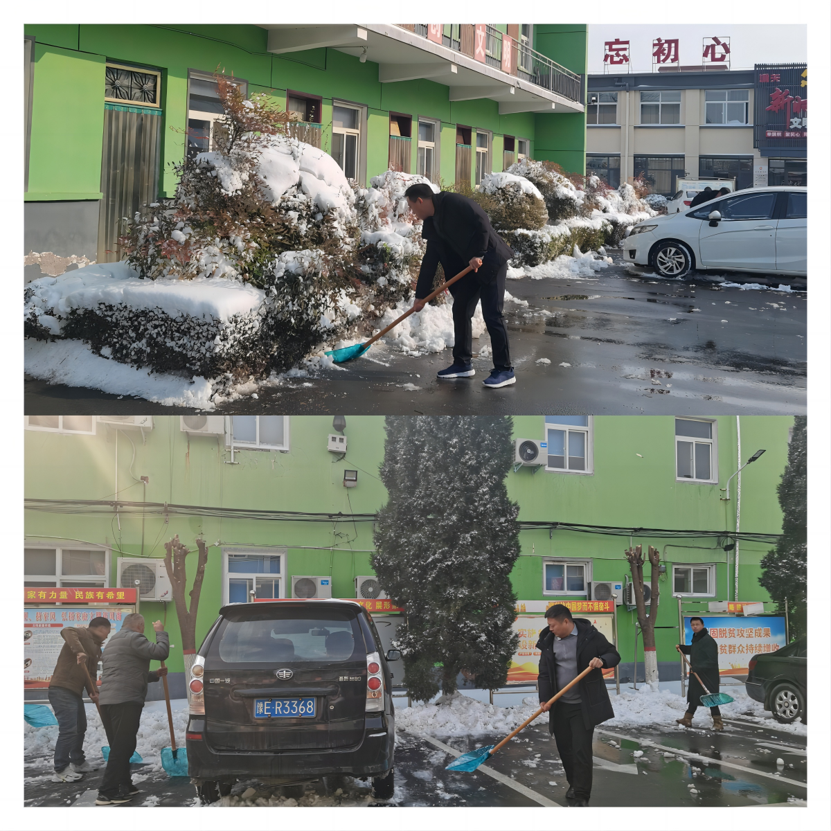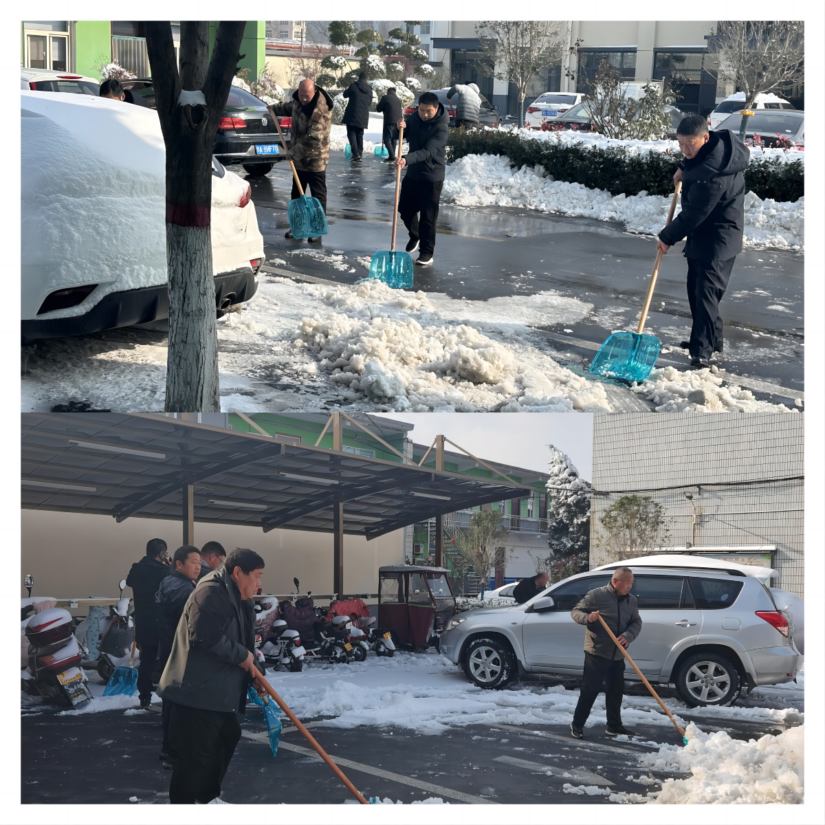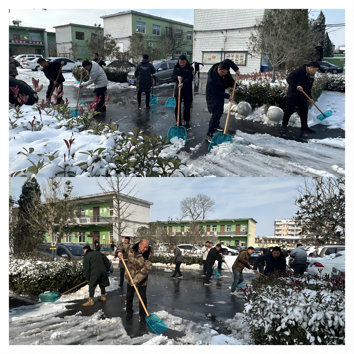在铲雪除冰行动中,机关干部及各村党员干部充分发挥先锋模范带头作用,大家不畏严寒,分工明确,通力合作,充分发挥不怕苦、不怕累的精神,挥舞着雪铲、铁锨、扫帚等工具,你铲我扫相互配合,干劲十足,采取人工清扫配合机械清雪的方式,对辖区内积雪进行全面清扫。空气中还时不时传出铁锹和地面的摩擦声,夹杂着扫帚的沙沙声,奏响了别样的“冬日扫雪曲”,忙碌的身影构成了一道靓丽的风景线。