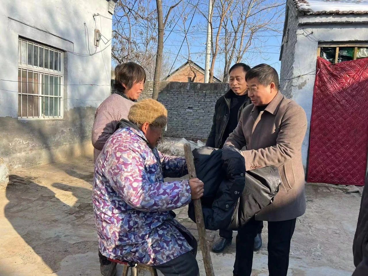 “今年家庭收入怎么样?身体如何?生产生活中还有哪些困难和问题?”走访中,每到一户,郑进武都与他们亲切交谈,全面了解其生产生活、身体状况及取暖等情况,叮嘱他们近期天气寒冷,注意防寒保暖和用电用气安全,并为他们送上御寒棉衣。暖暖的话语让困难群众连声道谢,让他们感受到如家人般的温暖和关怀。