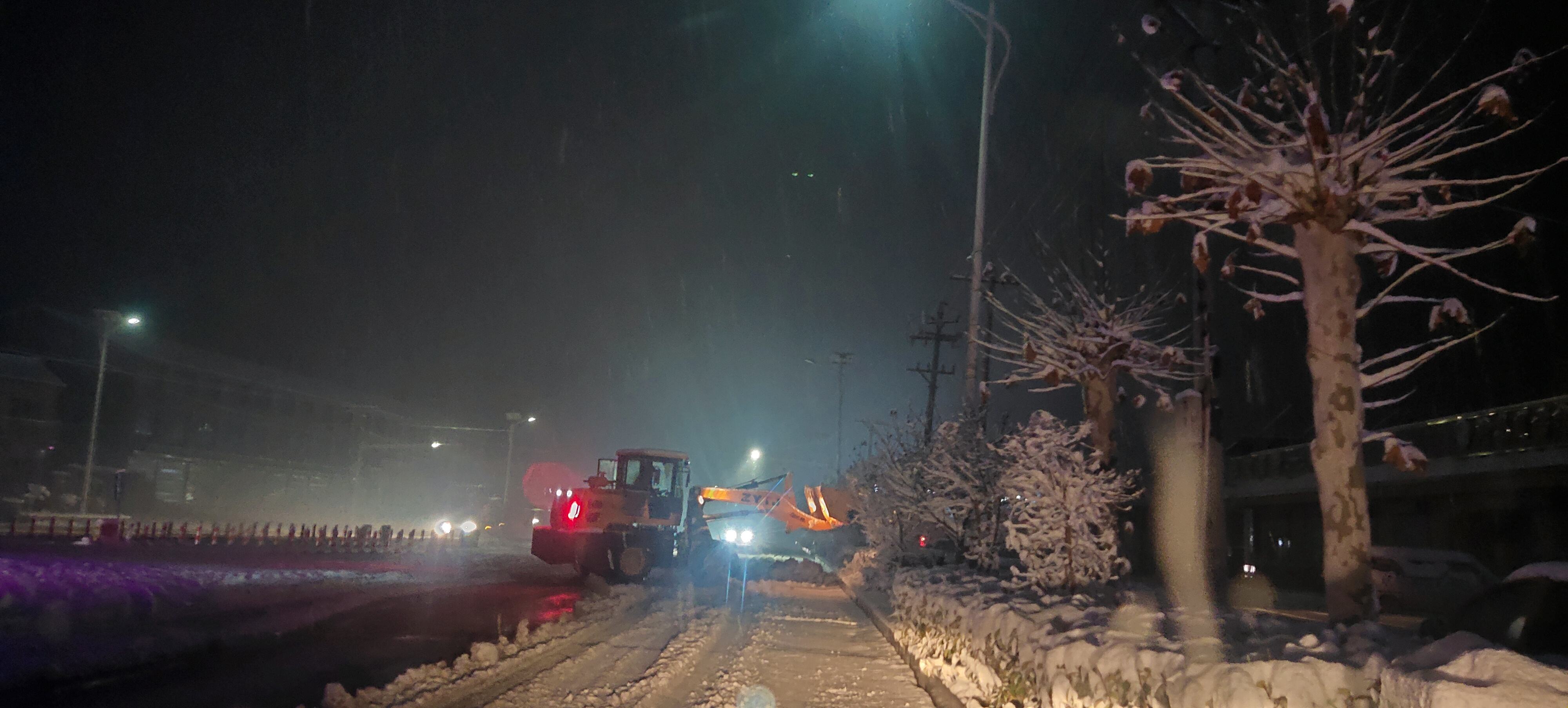 三是未“雪”绸缪严阵以待,强化除雪保畅。为确保镇域道路畅通,综合行政执法队强势开启清雪备战模式,通过机械与人工相互配合,出动清扫车、铲雪设备连夜开展除雪行动,做到“随下随扫随清”。并发动群众清理村内主次街道积雪,各扫门前雪。截至目前,镇主要道路、国道342和省道101白道口段全部能正常通行,无积雪覆盖。