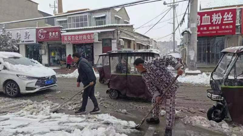 在清雪过程中,各村“两委”干部和党员带头,找来铲车、推土机等机械设备,群众开着自家的三轮车、四轮车,人机配合,所有人不畏严寒,干劲十足,手拿铁锹、扫把等工具,边清边运,尽量不在路边留存积雪,减少因积雪融化导致路面结冰给群众出行带来的安全隐患。