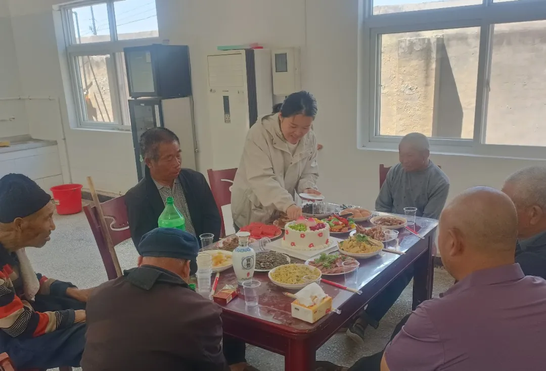 活动现场,老人们齐聚一堂,敬老院为老人们精心准备了可口的饭菜和生日蛋糕,并和老人们一起唱起了生日歌,一起为老人们送上美好的生日祝愿,现场其乐融融。随后,工作人员为老人们夹菜、切蛋糕,细心照顾着每一位老人,让在场的每位老人都感受到了敬老院大家庭的温暖与爱,每位老人都深刻体会到了“夕阳无限好”的幸福与快乐。