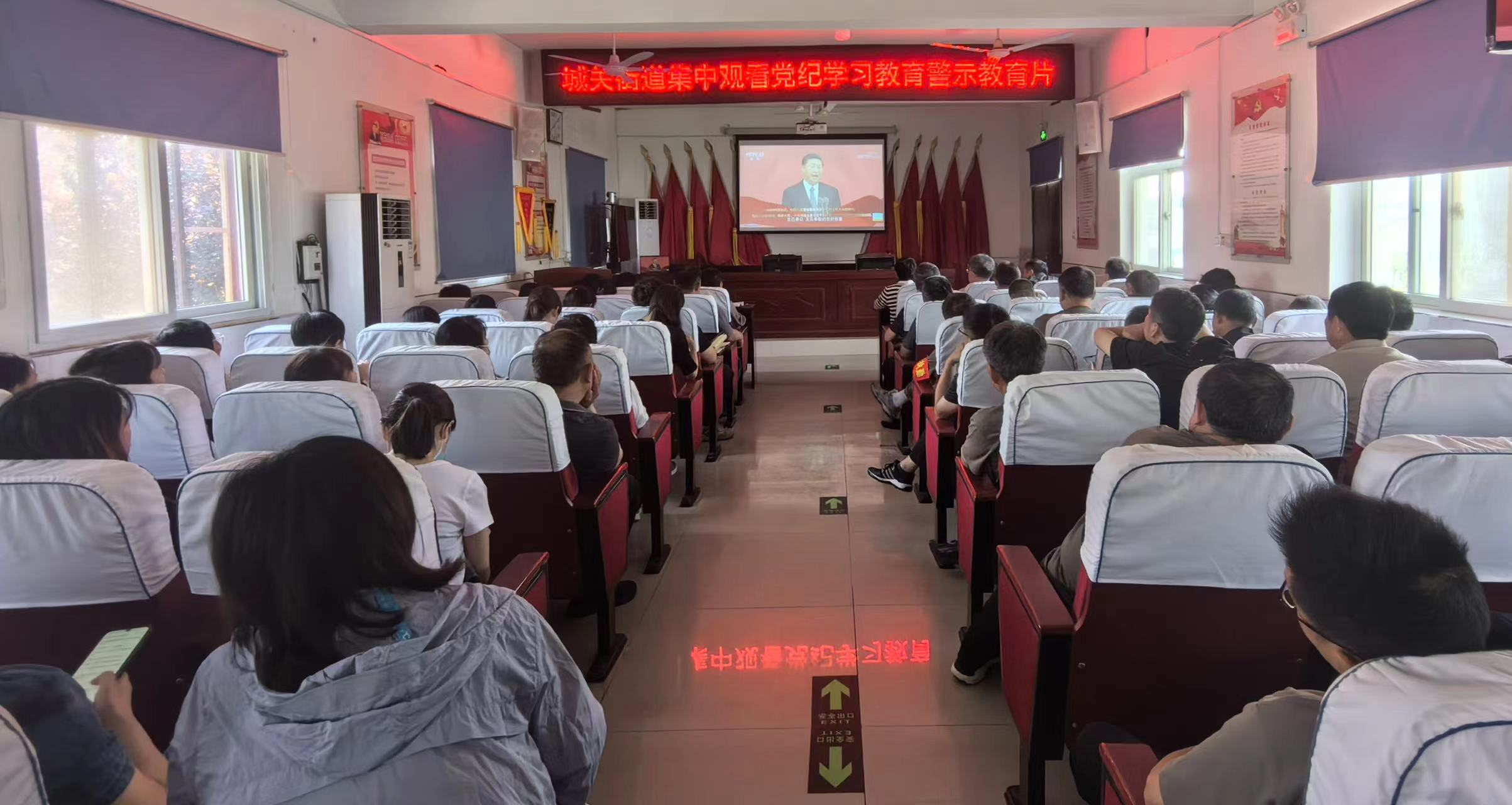 城关街道组织集中观看党纪学习教育警示教育片