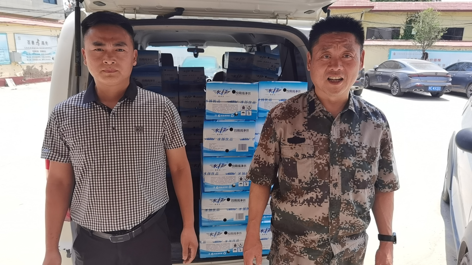 滑阳消防器材负责人将100件矿泉水送达白道口镇,为一线干部送上了慰问关怀。
