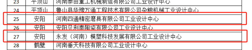 近日,河南省工信厅公布“第六批省级工业设计中心名单”,开发区两家企业:河南四通精密磨具有限责任公司工业设计中心、永发(河南)模塑科技发展有限公司设计中心通过认定,实现该领域荣誉零突破!
