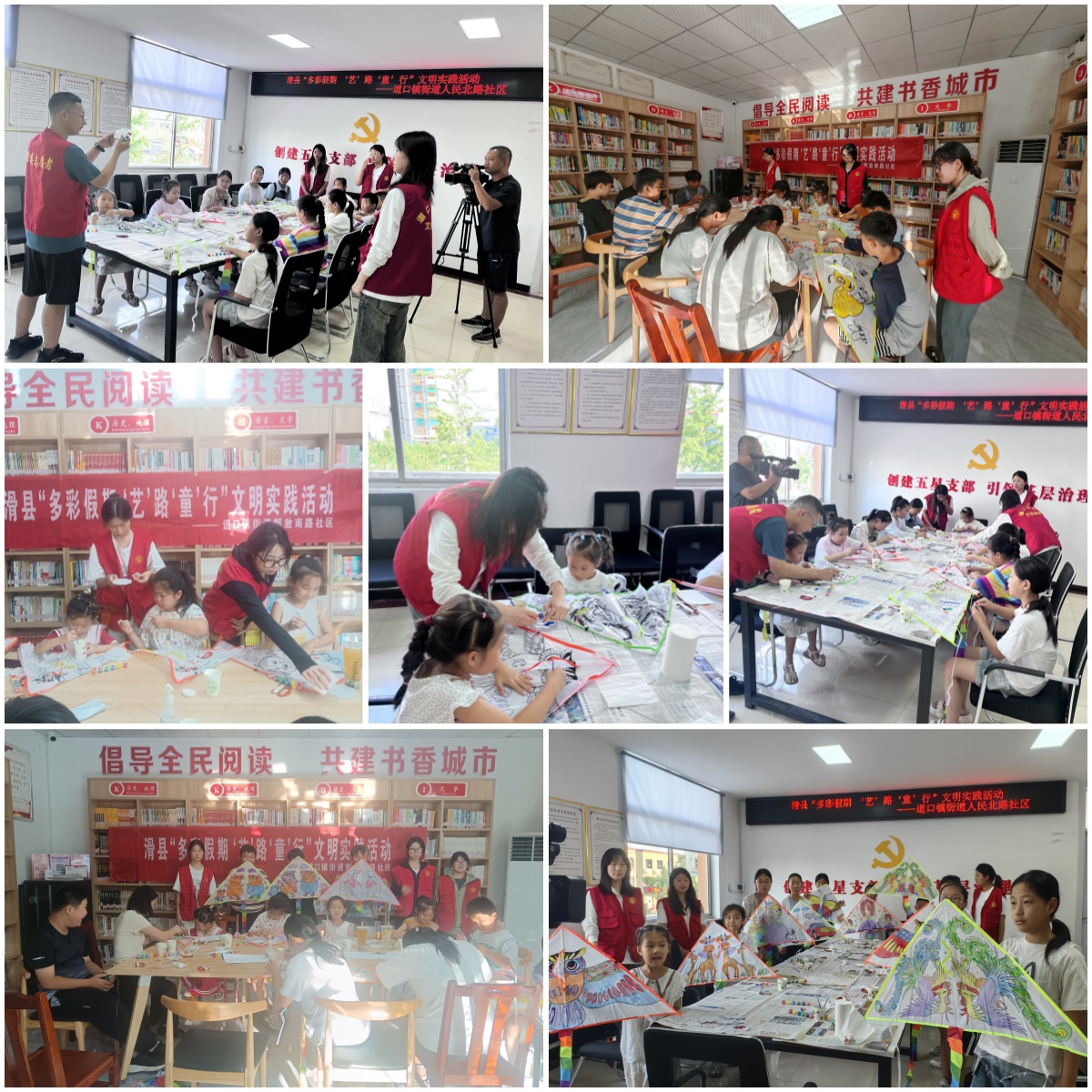 为丰富辖区未成年人暑期生活,7月31日,道口镇街道人民北路社区和解放南路社区开展“多彩假期 ‘艺’路‘童’行”——手绘风筝文明实践活动。