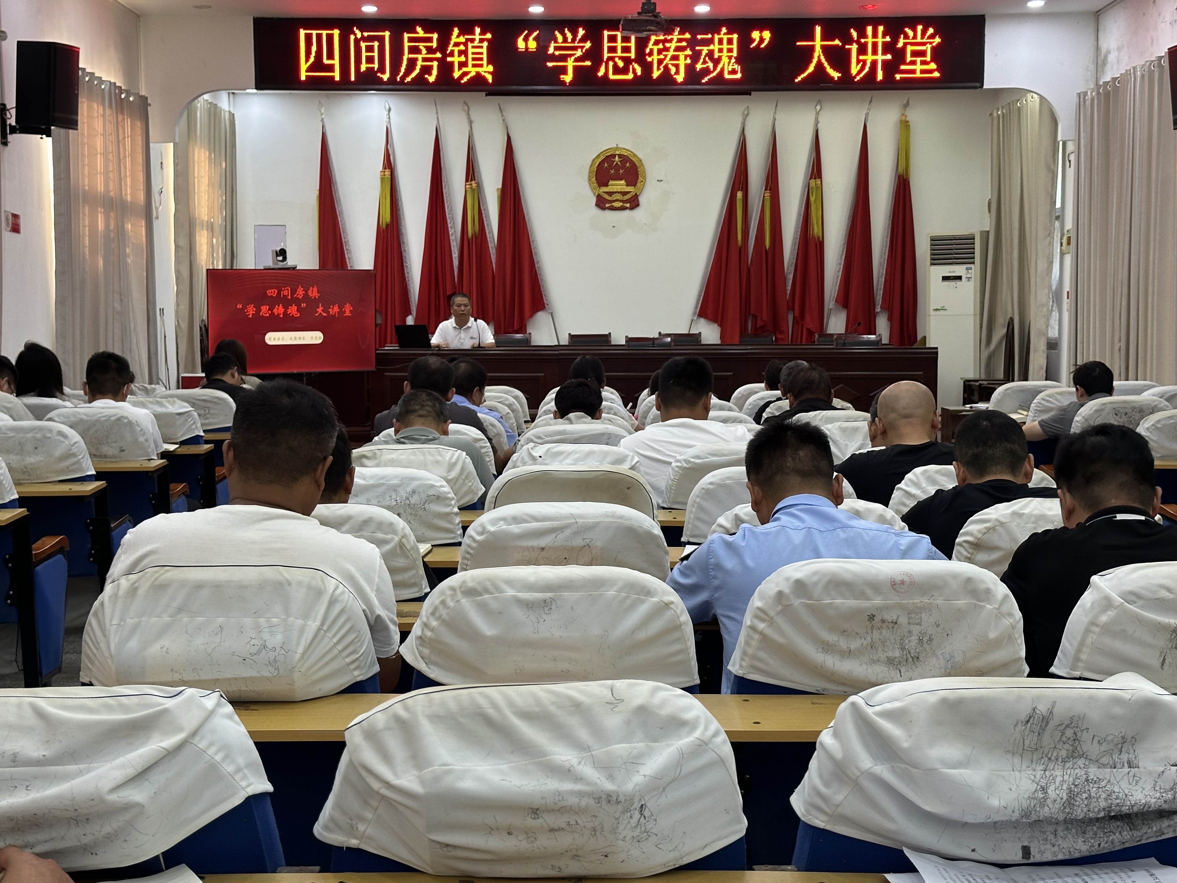 9月5日下午,四间房镇开展第七期“学思铸魂”大讲堂,本次课堂由镇党委委员、武装部长李忠强领学,全体机关干部听讲。