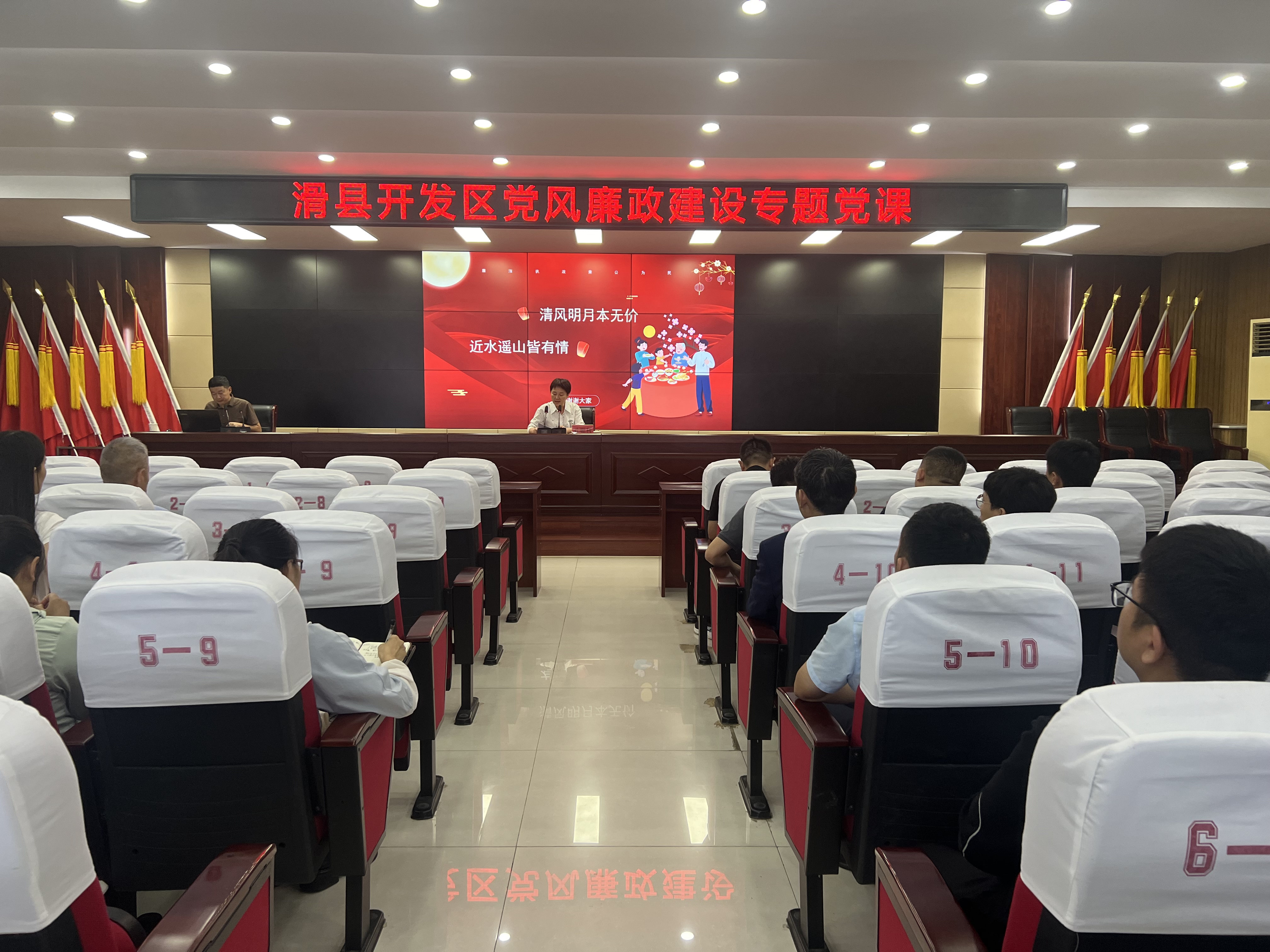 王建勇以“清风伴明月 廉洁过双节”为题,从警示教育、廉洁规范、廉“节”提示三个方面进行讲授,通过剖析典型案例,将理论与实际结合,引导干部职工进一步强化政治纪律观念,增强廉洁从政意识,提升履职尽责能力,着力营造“以廉为荣、风清气正”的良好政治生态。