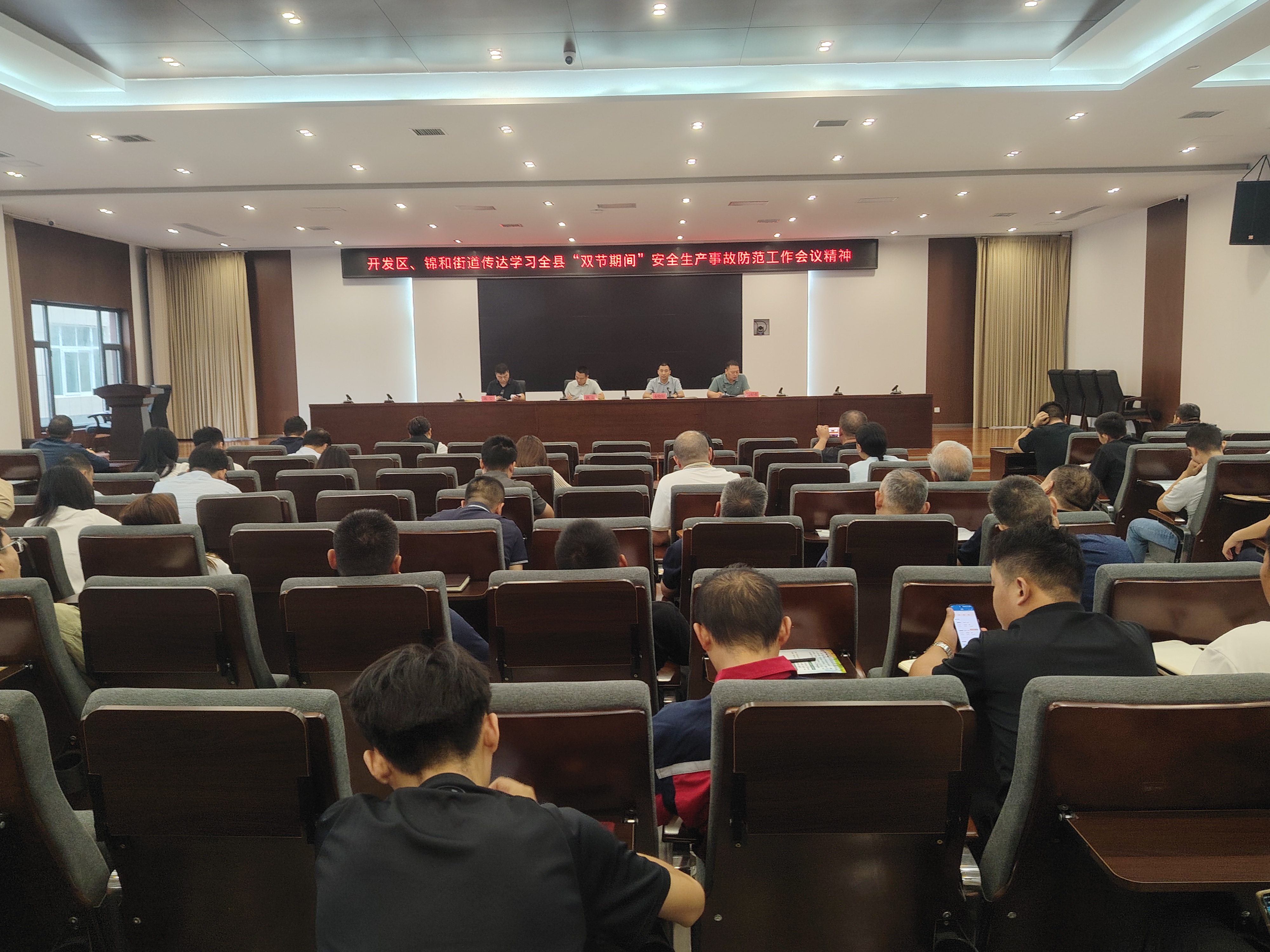 在中秋、国庆双节到来之际,为学习贯彻习近平总书记关于安全生产工作的重要指示精神,深入落实省、市、县各项决策部署,切实做好节日期间的安全生产工作,9月13日上午,滑县先进制造业开发区、锦和街道办事处在锦和街道会议室组织召开开发区、锦和街道“双节”期间及近期安全生产工作安排部署会;开发区、锦和街道辖区内130余家企业,新城中队、中心校、市场所等职能部门,锦和街道中层以上干部及其他领域安全生产负责人参加会议,锦和街道办事处主任秦晓轩主持会议。