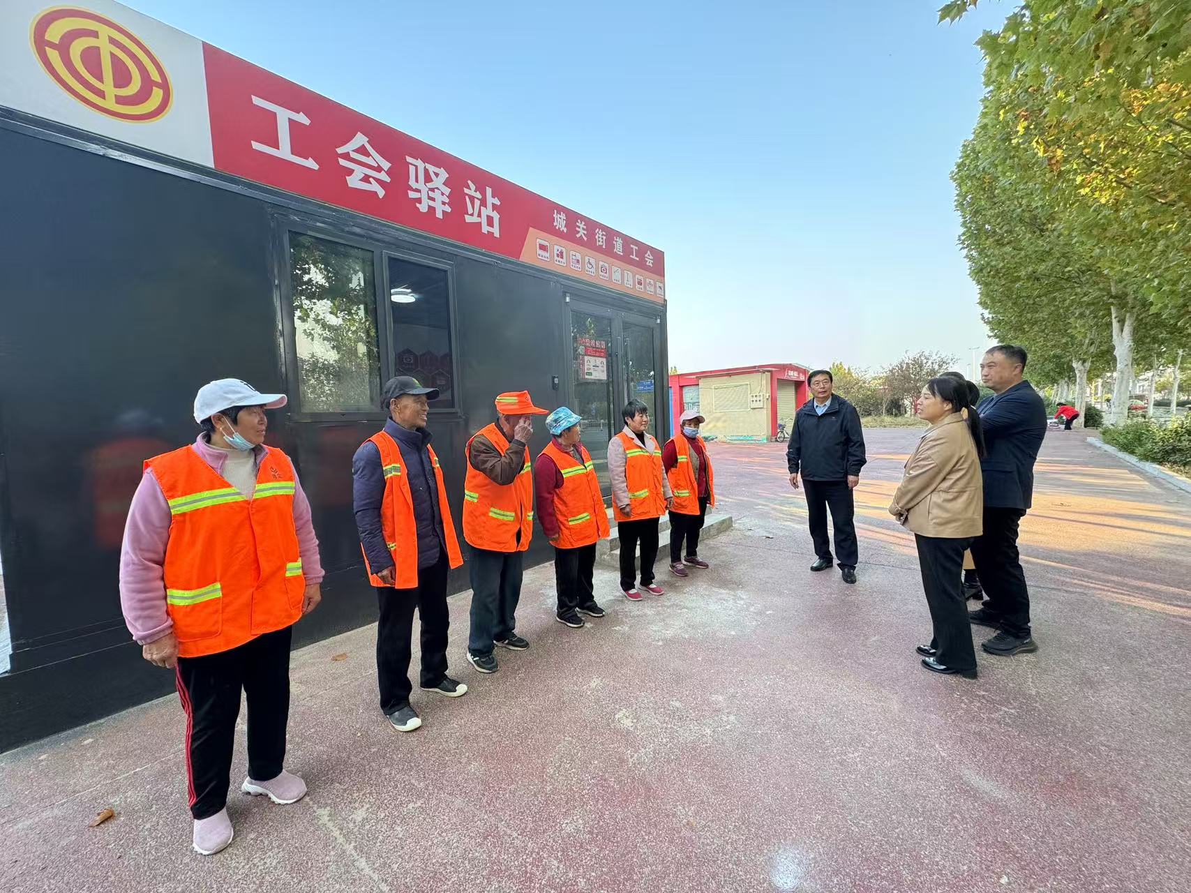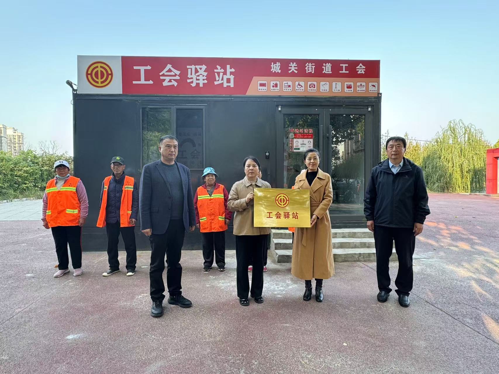 11月7日,城关街道工会智能驿站授牌启用仪式在城关街道戏曲广场举行,县人大常委会副主任、县总工会主席陈卫东,县总工会常务副主席李莉,县职工服务中心主任姬生辉,城关街道党工委副书记张倩等参加仪式。