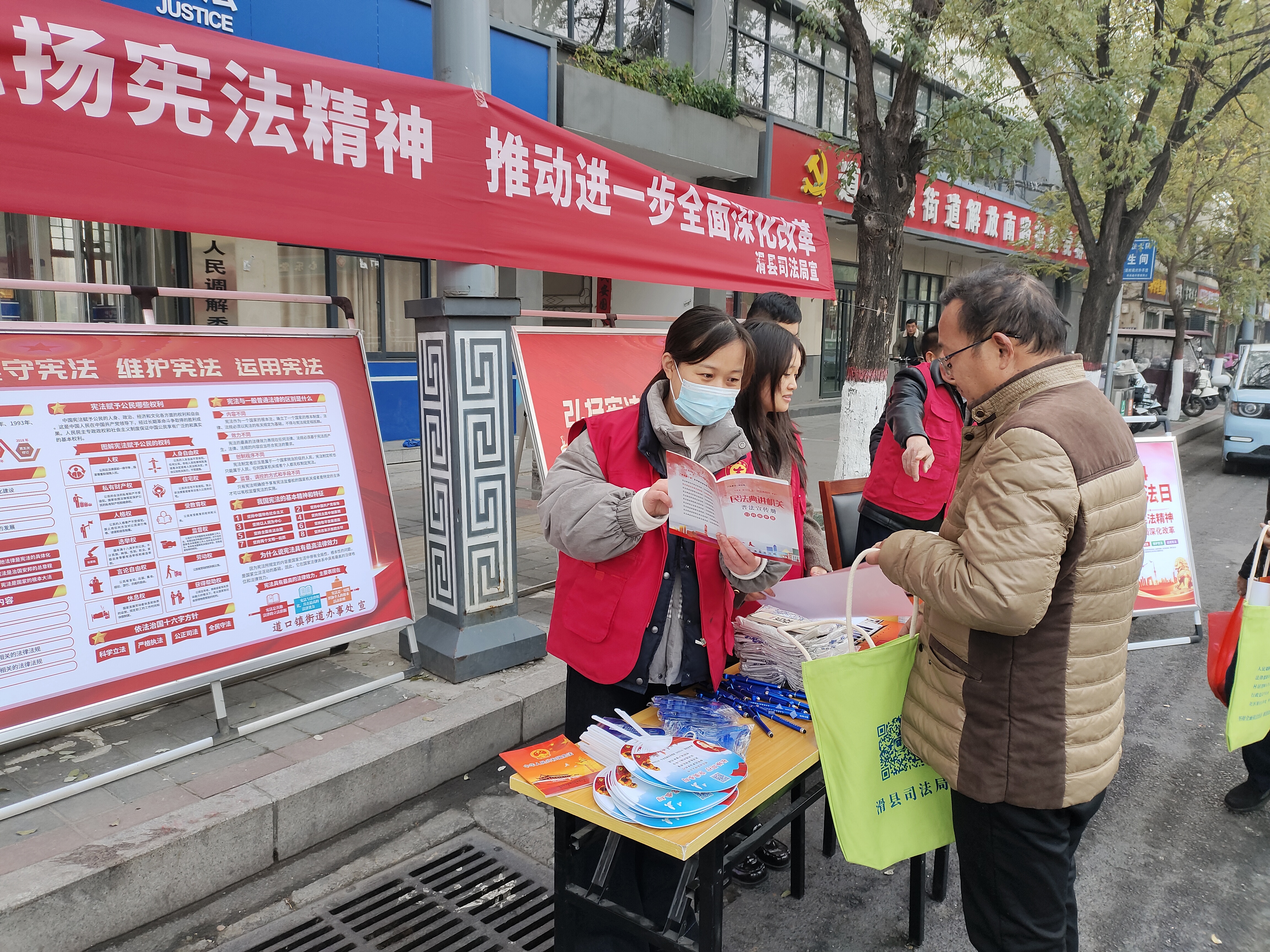 12月4日,是我国第十一个国家宪法日,为弘扬宪法精神、增强法治观念,道口镇街道开展“大力弘扬宪法精神,推动进一步全面深化改革”普法宣传活动。