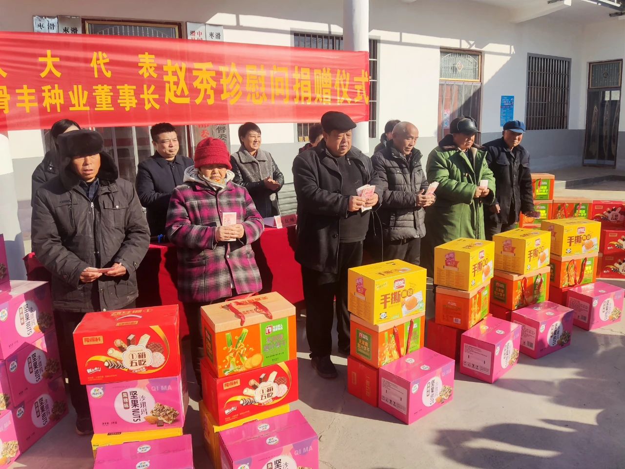 新春将至,暖意先行。1月17日上午,全国优秀党务工作者、人大代表、滑丰种业董事长赵秀珍慰问捐赠仪式在枣村乡西徐营村举行,为困难群众送来慰问金及面包、饼干等暖心物资,用实际行动践行了“人大代表为人民”的服务宗旨。县人大常委会党组副书记、副主任张红琳出席仪式,枣村乡党委副书记、乡长王日轩主持仪式。