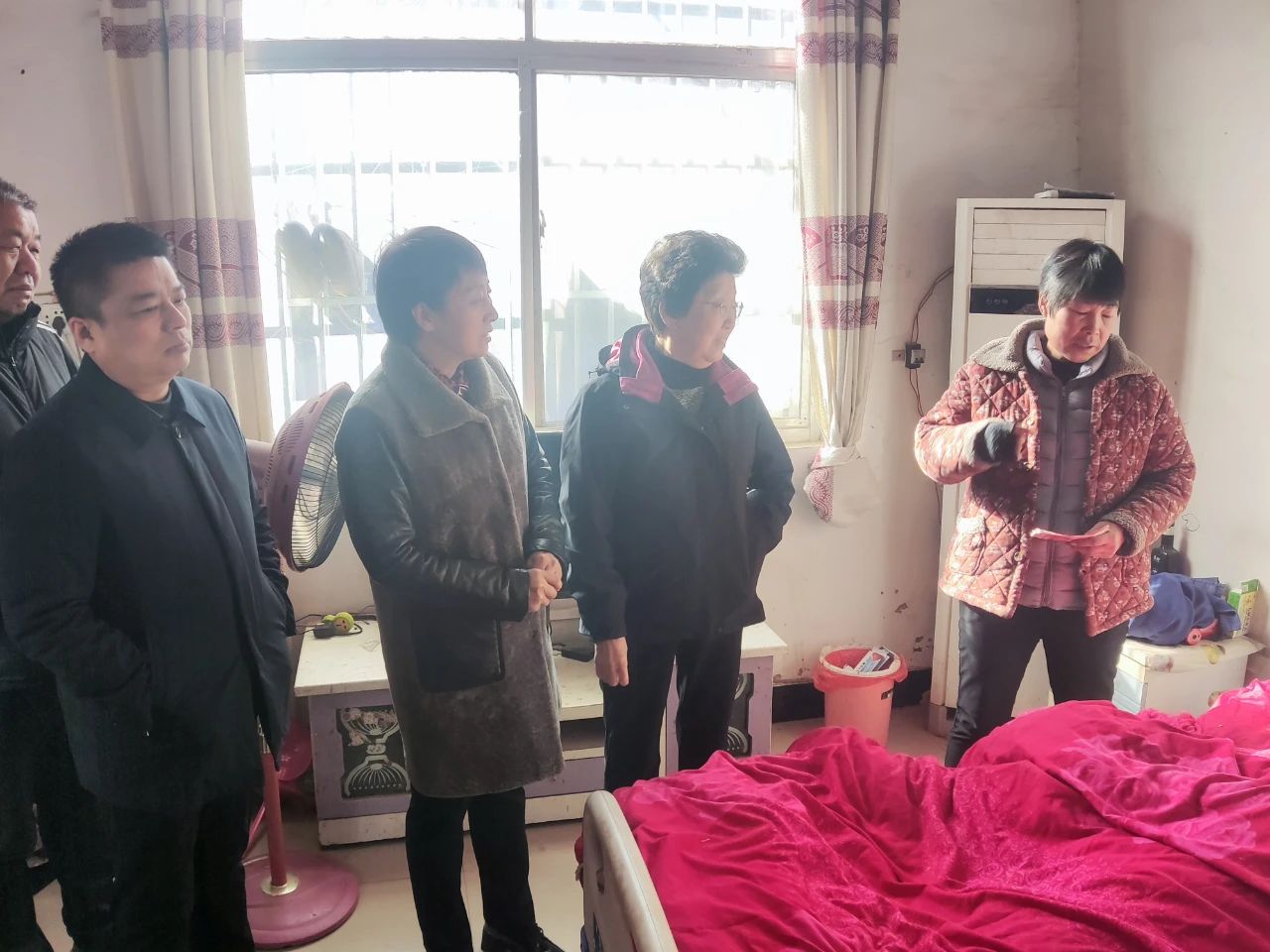 捐赠仪式结束后,张红琳、赵秀珍一行来到西徐营、姜庄村3户困难群众家中实地走访慰问,为他们送来新春祝福、慰问金及生活物资,并与他们亲切交谈,详细询问他们的家庭生活、身体健康及子女就业就学等情况,鼓励他们勇敢面对困难和挫折,在党和政府的帮助下努力走出困境、拥抱生活。同时叮嘱村“两委”做好困难群众服务工作,切实解决困难群众生活中的实际问题,保障他们度过一个温暖、欢乐、祥和的春节。