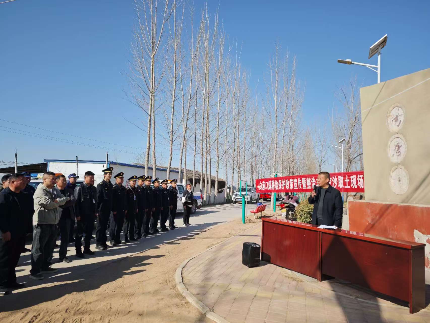 会后,白道口镇自然资源所、派出所、综合行政执法大队联合进行了耕地保护政策宣传,工作人员通过播放录音、发放传单、政策解读等多种方式,向群众宣传了耕地保护政策,引导群众共同参与耕地保护工作。
