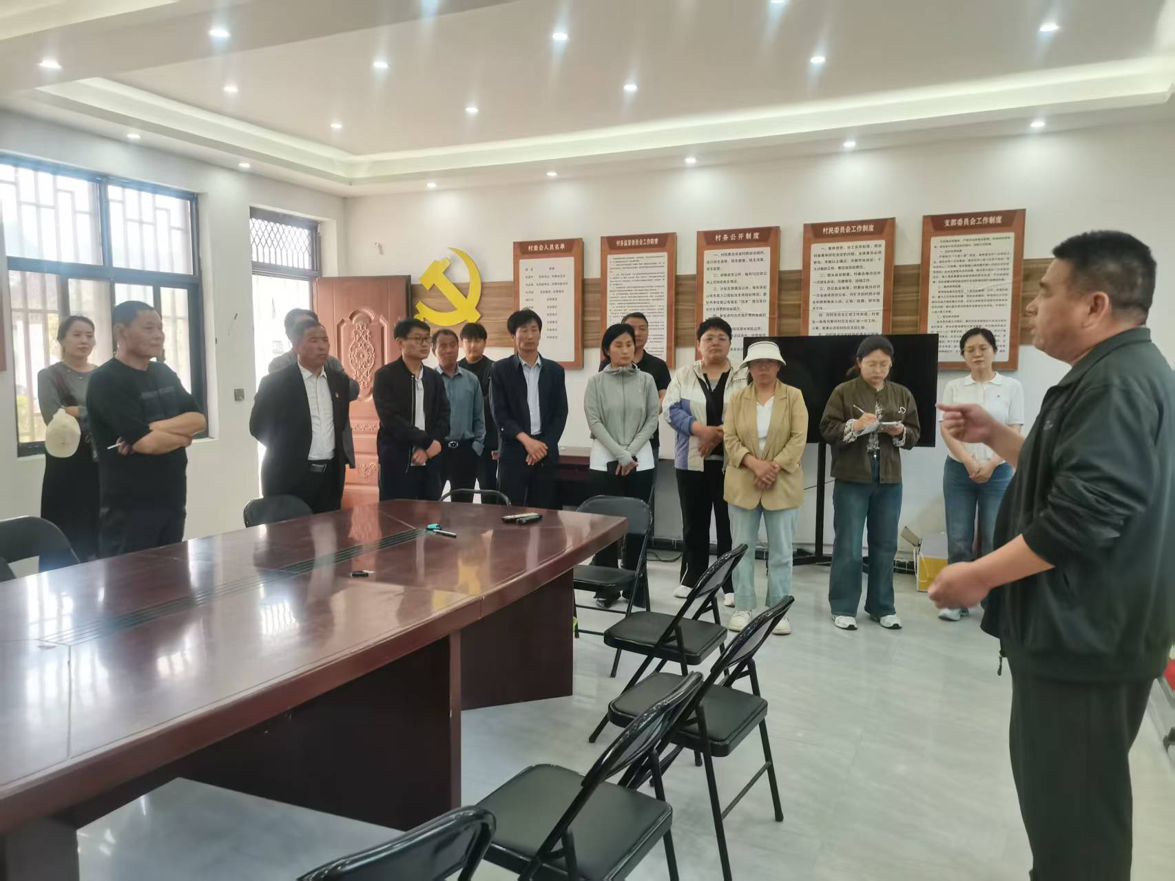 在牛屯镇米庄村,观摩组听取了村党支部书记关于村集体运用“草坡”模式发展集体经济以及收益分配、带农增收成效情况的介绍;在瓦岗寨乡瓦岗集村,观摩组听取了瓦岗集村另辟蹊径通过推进“双社”联动发展,统一开展购、管、销服务获得价格优势,实现集体经济节本增收的“瓦岗”模式介绍。最后,观摩组来到城关街道东林头村,听取村党支部书记关于村集体学习“草坡”模式,成立农民专业合作社,动员村民以土地入股,成方连片流转村民土地,进行集中规模化经营促进集体经济增收的经验介绍。