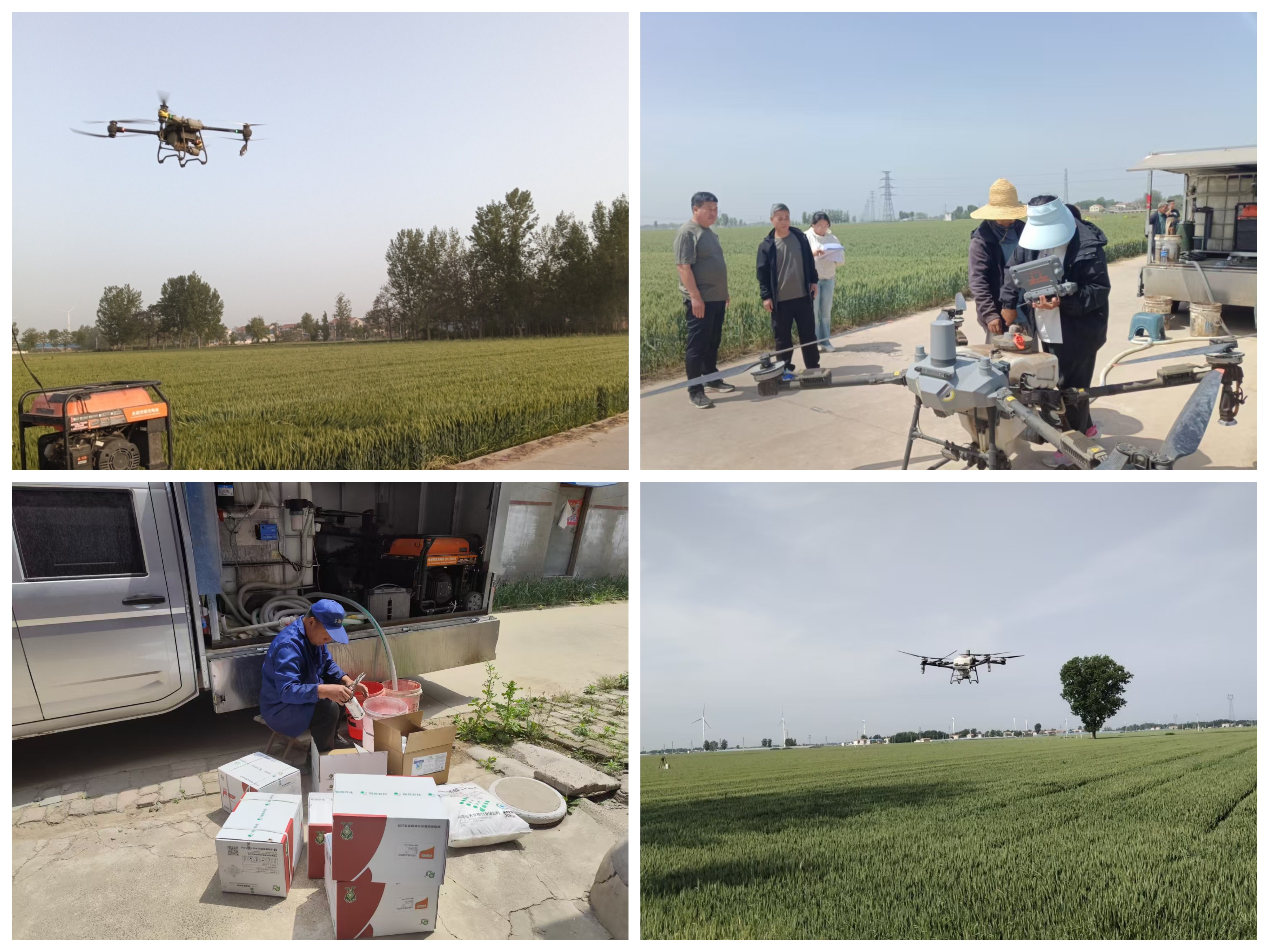 5月2日以来,在留固镇广袤的麦田里,一片繁忙景象,植保无人机在低空有序穿梭,伴随着螺旋桨的轰鸣声,细密的农药均匀地喷洒在小麦植株上,为这片孕育希望的田野披上了一层“防护衣”。