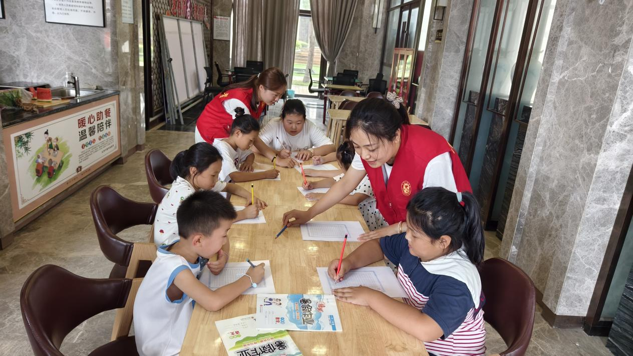 在各村(社区)党群服务中心,公益课堂设置了课业辅导、读书分享、安全讲座等活动。课业辅导时,志愿者们耐心为孩子们答疑解惑,帮助他们巩固学科知识;读书分享激发了孩子们的阅读兴趣和表达欲望,孩子们在红色故事分享中感悟初心的力量;安全守护环节通过情景模拟、知识宣讲等形式,重点普及防溺水、防拐骗、交通安全等常识,为孩子们的暑期安全筑牢防线。