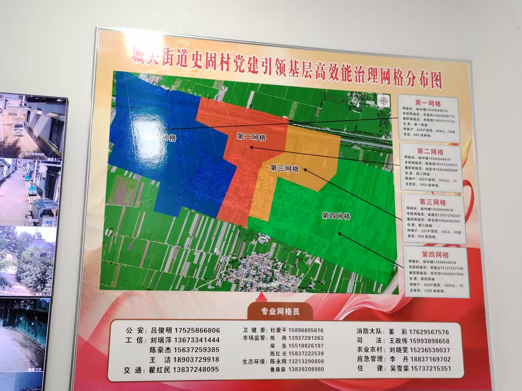 网格化管理是史固村基层治理的重要支撑。按照全覆盖、无死角、不交叉原则,将全村划分为 4 个网格,实现管理无盲区。构建“人防 + 技防”深度融合的现代化治理体系,一方面加强队伍管理,通过系统化培训让网格员熟练掌握系统使用和业务规范,细化“七大员”职能定位并张贴任务清单;另一方面强化网格走访,常态化掌握民情,做到“小事不出网格、大事不出村”。同时,布设 99 个高清摄像头,实现重点区域全天候监控,用好智慧平台整合数据,对人、事、物统一建档、动态管理、闭环处置,提升治理效率。