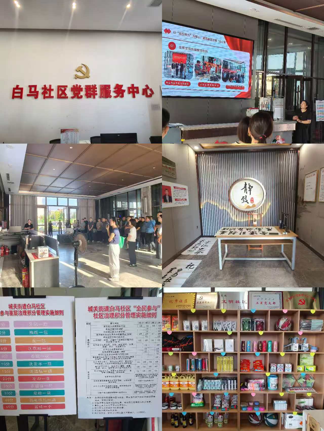 在白马社区,观摩组先后参观了社区党群服务中心、书法室等活动区域,认真听取了白马社区“组织有力+网络有序+服务有效”的党建引领社区高效能治理经验。随后在史固村,观摩组现场参观了“两瓜一菜”产品展区,听取了史固村对村级网格治理、信用积分制管理等先进工作经验的介绍。