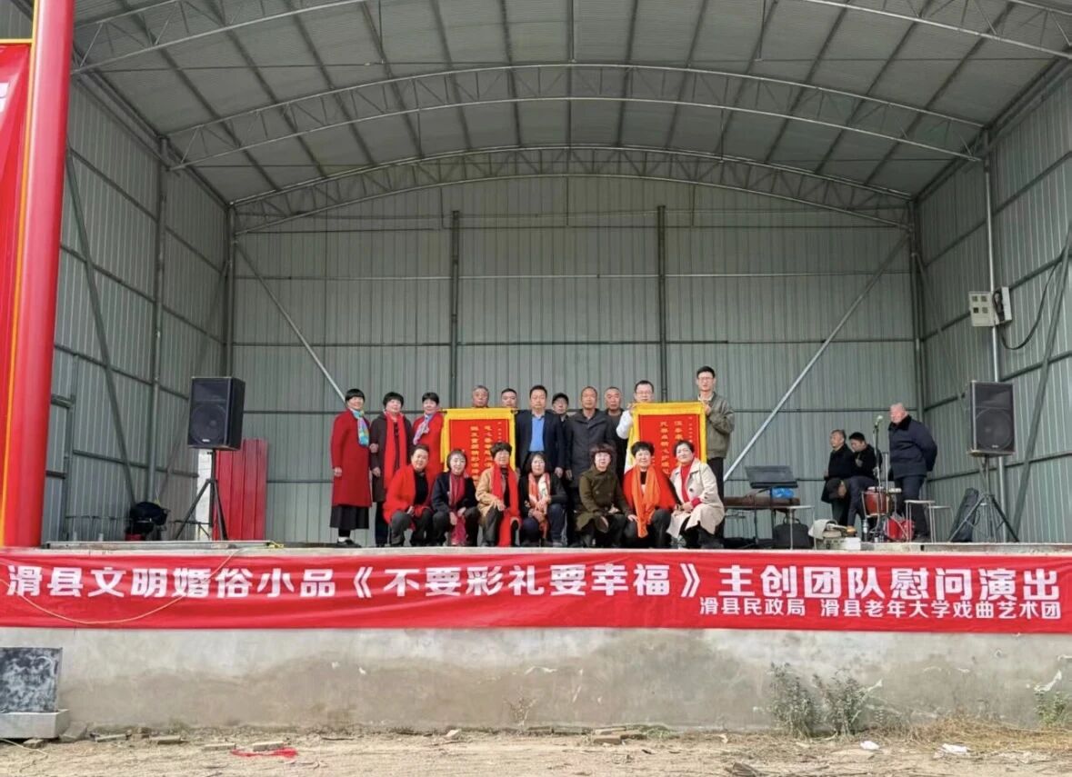 立冬已过,寒意初显。2025年11月15日,滑县枣村乡冯庄村热闹非凡,一场由滑县民政局精心组织的文明婚俗小品《不要彩礼要幸福》主创团队慰问演出暨社会救助政策进村居巡回宣讲活动,在这里热烈展开。