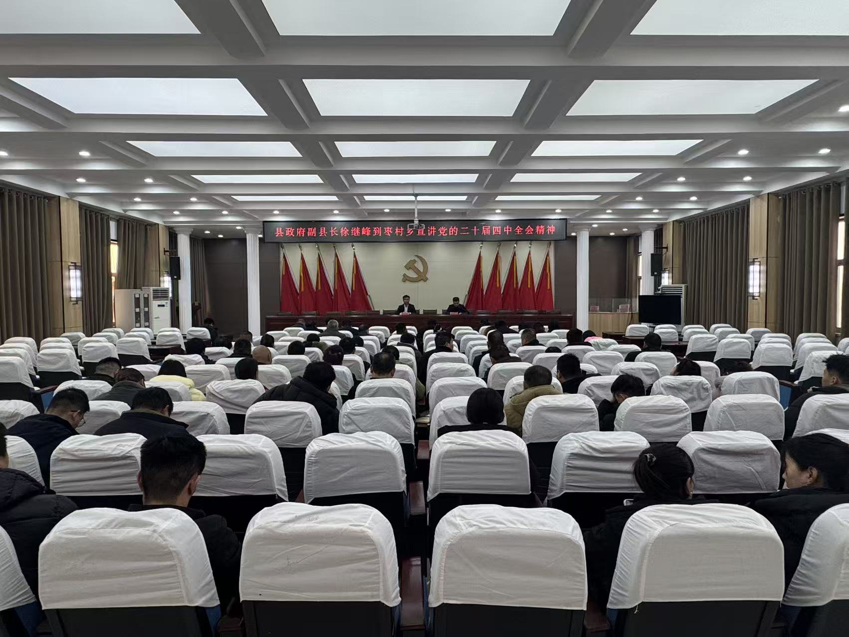 12月30日下午,县政府副县长徐继峰到枣村乡开展学习贯彻党的二十届四中全会精神宣讲,推动全会精神深入基层、深入人心。乡党委副书记、乡长王日轩主持宣讲会,乡全体机关干部参加会议。