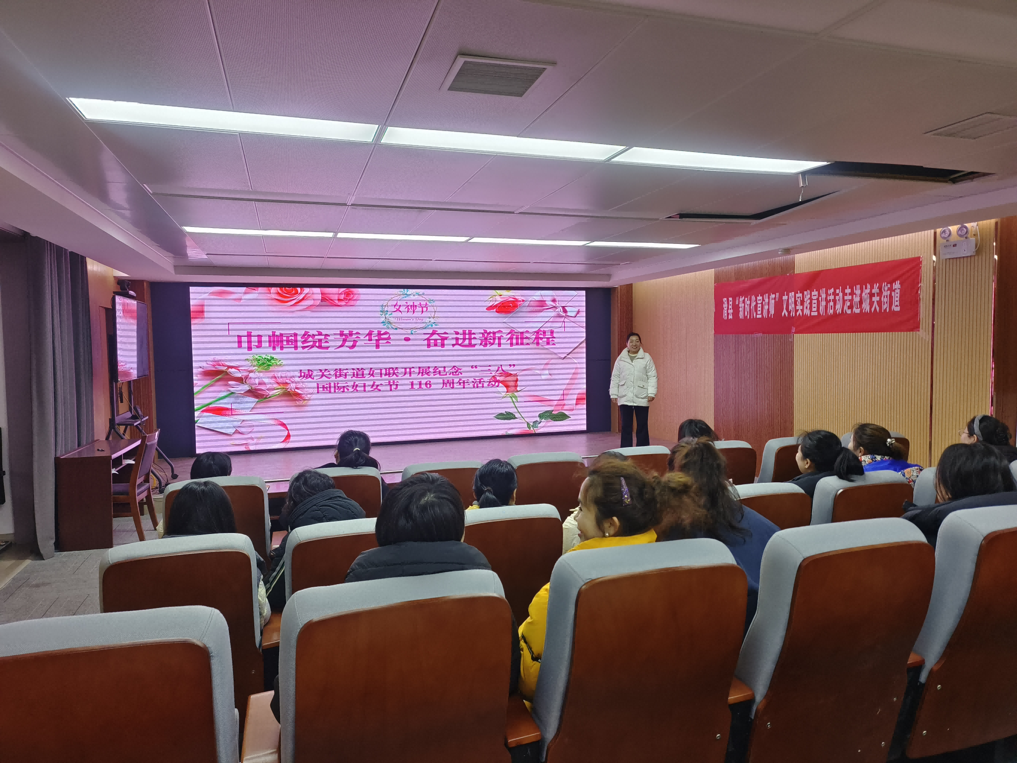 阳春三月,芳华绽放。在第114个“三八”国际妇女节来临之际,城关街道于3月6日上午,在街道新时代文明实践站二楼隆重开展以“巾帼绽芳华·奋进新征程”为主题的庆祝活动,组织机关全体女同志欢聚一堂,共庆节日、共促发展,凝聚巾帼力量,彰显巾帼担当。