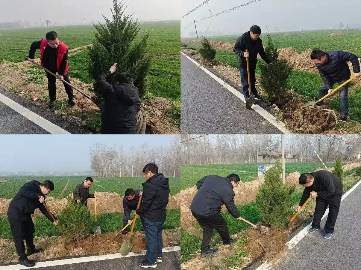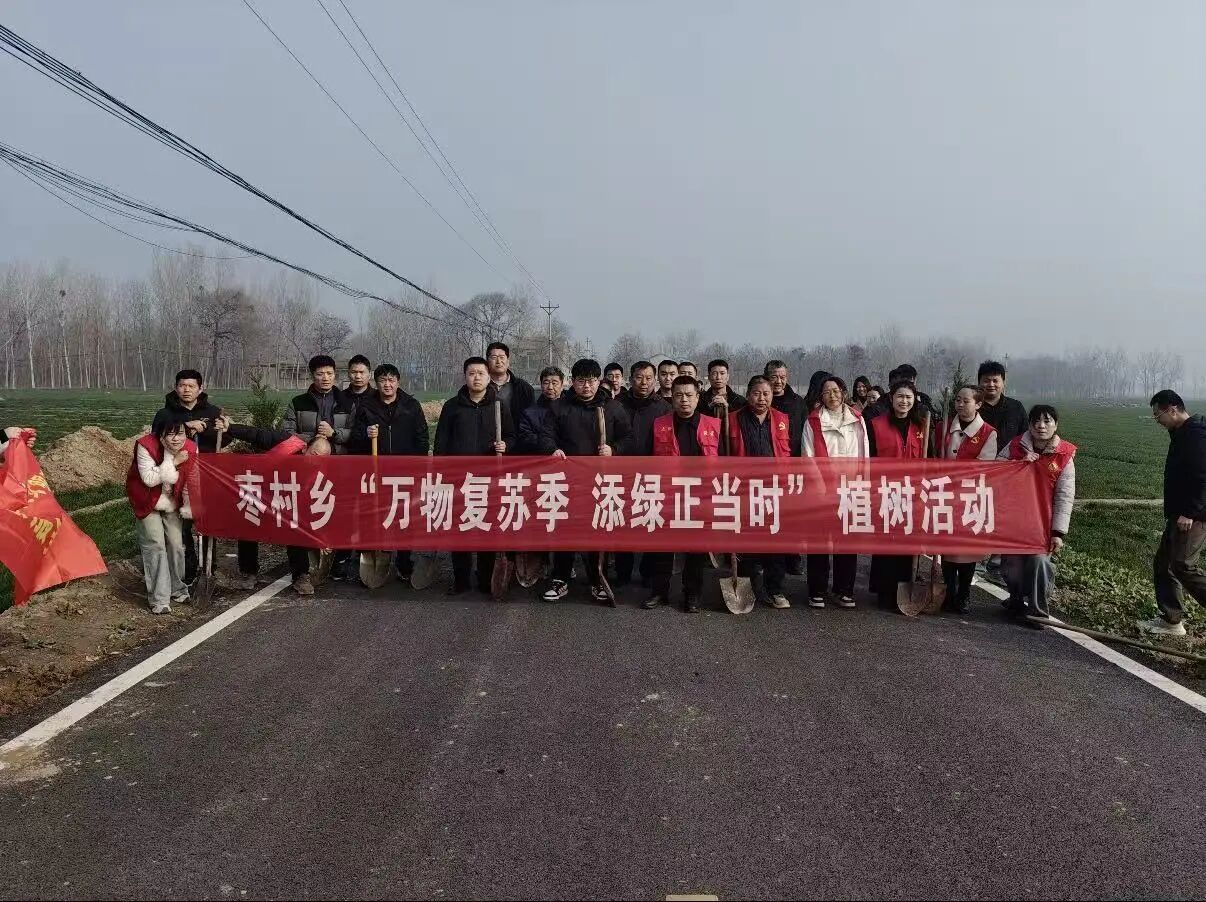 活动现场,参与人员热情高涨、干劲十足。大家分工明确、协作有序,挥锹整地、扶苗定植、覆土浇灌,每个环节都一丝不苟。经过一番辛勤劳作,一株株新栽的树苗在春风中傲然挺立,焕发出勃勃生机,为枣村乡的大地披上了崭新的绿装,更为纵横交织的“丰”字路网增添了鲜活的绿色脉络,种下了绿色发展的新希望。