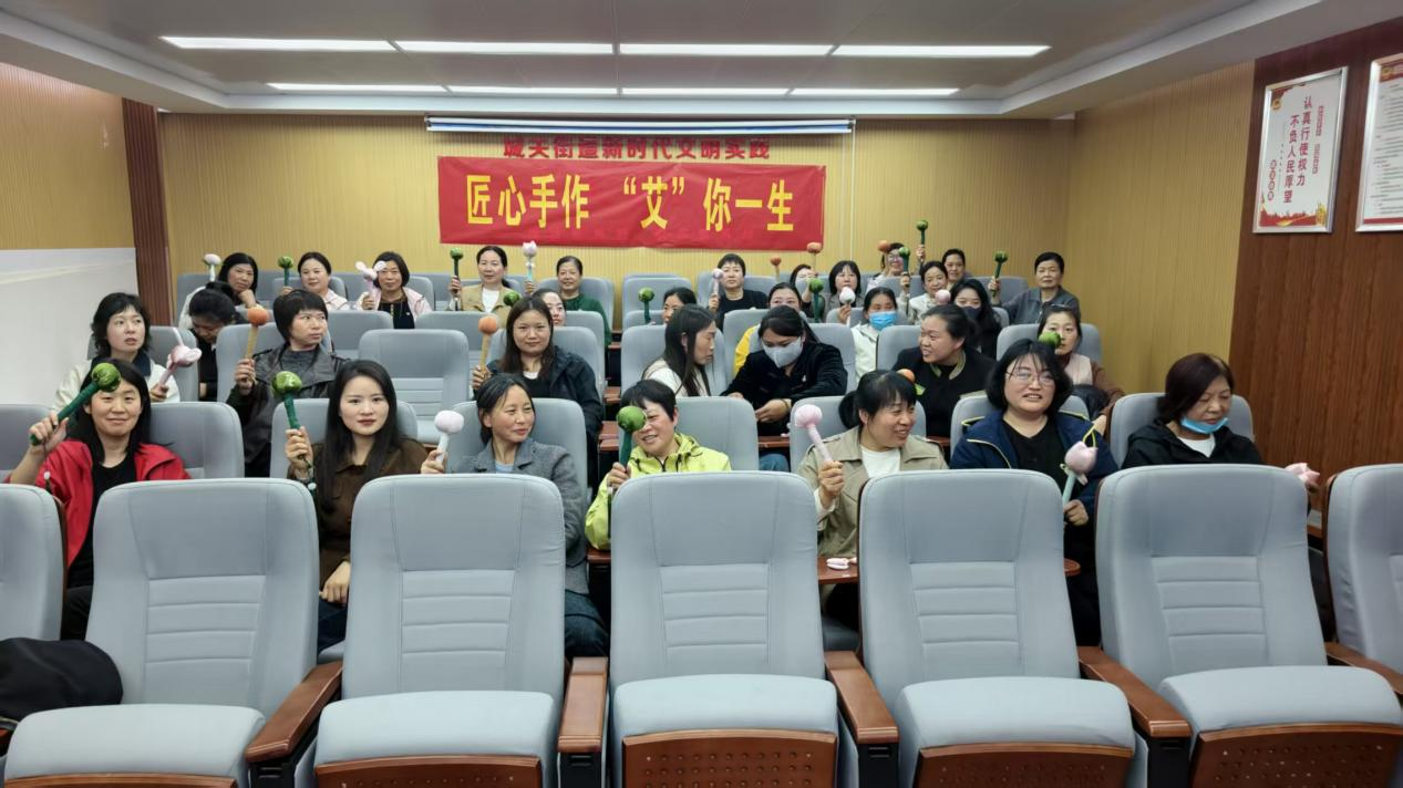 在互动性极强的手工制作艾草锤环节,女职工们热情高涨、积极参与。讲师面对面讲解艾草锤的养生功效,手把手指导制作流程,女职工们边学边做、相互交流,在动手实践中不仅掌握了手工技巧,更解开了日常健康疑惑,有效卸下了工作与生活中的身心压力,现场氛围温馨而热烈。