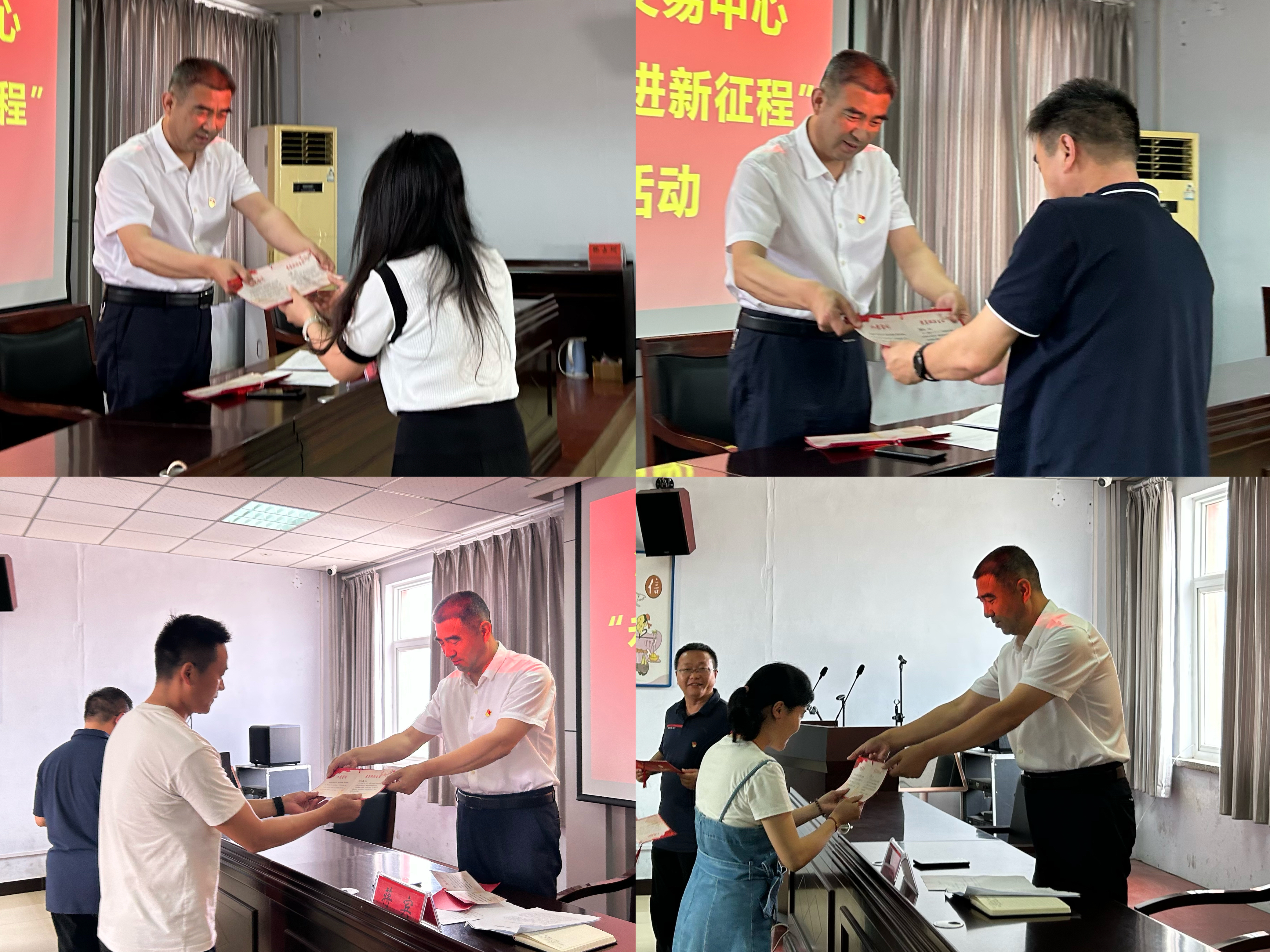 举办一次政治生日 中心为7月份前入党的五位同志举办了“政治生日”。中心党组书记、主任蒋宾为他们赠送了贺卡,贺卡上记录着党员的入党时间,并印有“入党誓词”和“红色寄语”,寄托着党组织的期望,勉励大家要不忘初心使命、牢记党的宗旨,增强党员意识,时刻以党员的标准严格要求自己,更好地发挥党员的先锋模范作用。