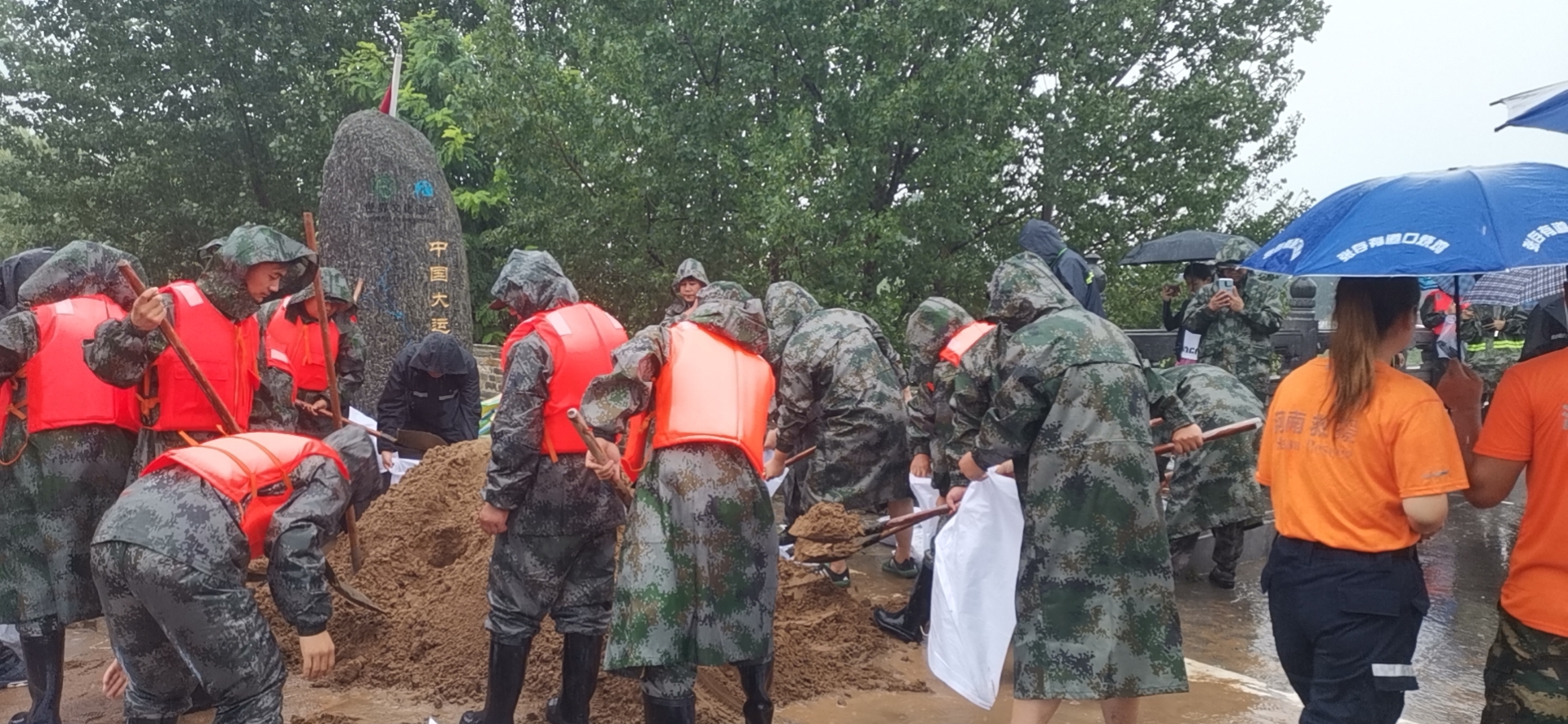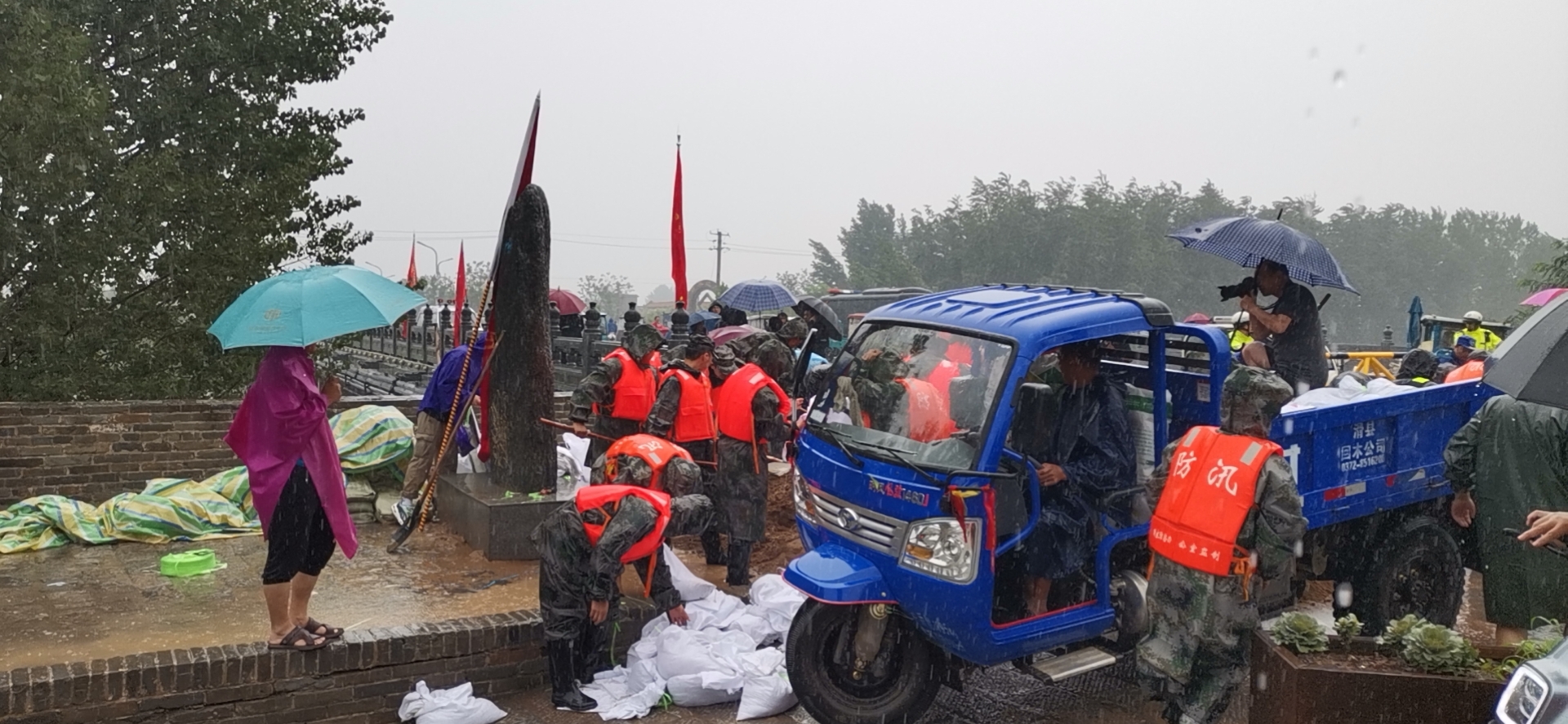 7月22日,因卫河桥库容量已超最高水位线,防汛压力巨大,按照县防汛指挥部统一调度安排,城关街道民兵应急分队38人20分钟火速集结赶赴卫河支援防汛前线。