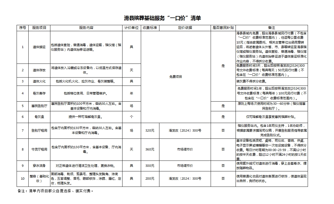 滑县殡葬基础服务流程图及滑县殡葬基础服务“一口价”清单