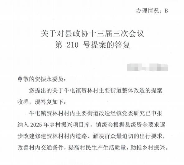 关于对县政协十三届三次会议第210号提案的答复